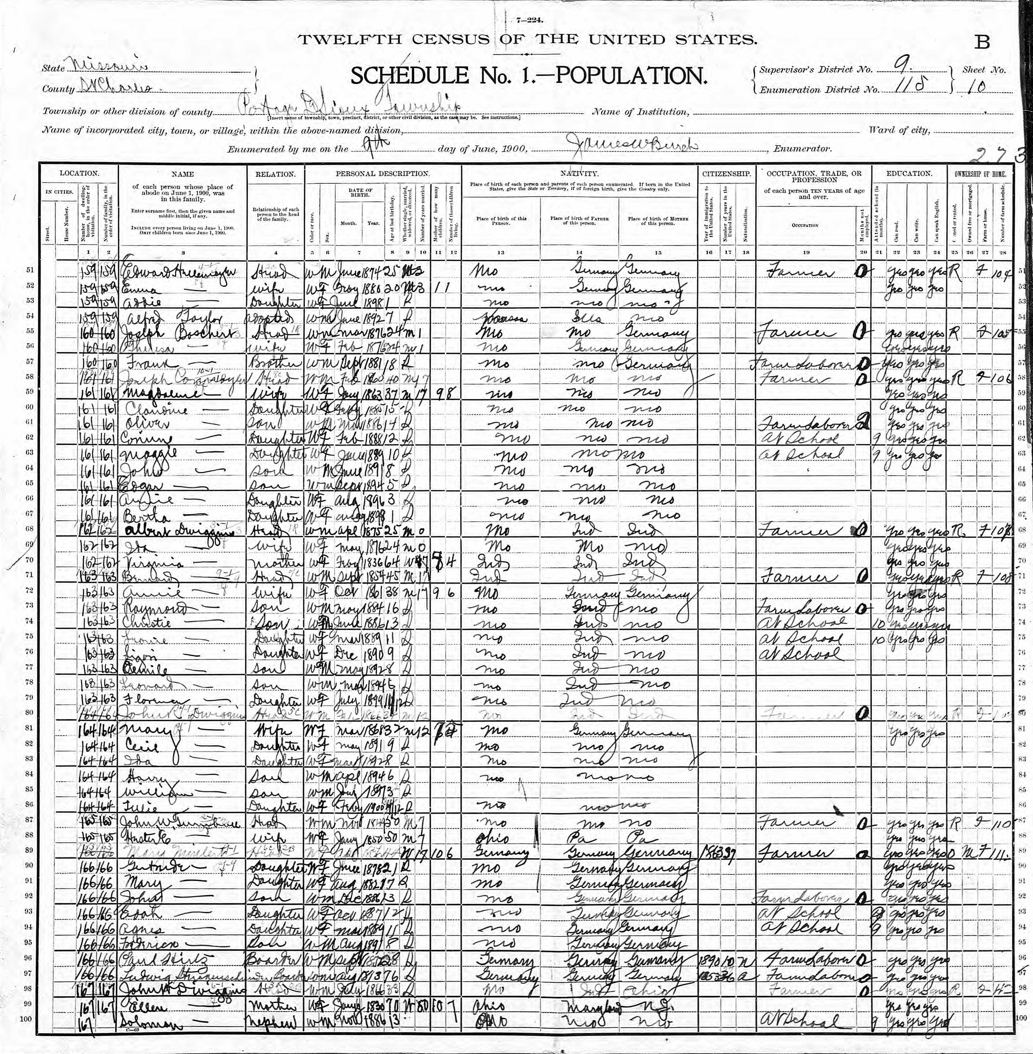 Connoyer Family 1900 Federal Census Missouri, Lines 58-67