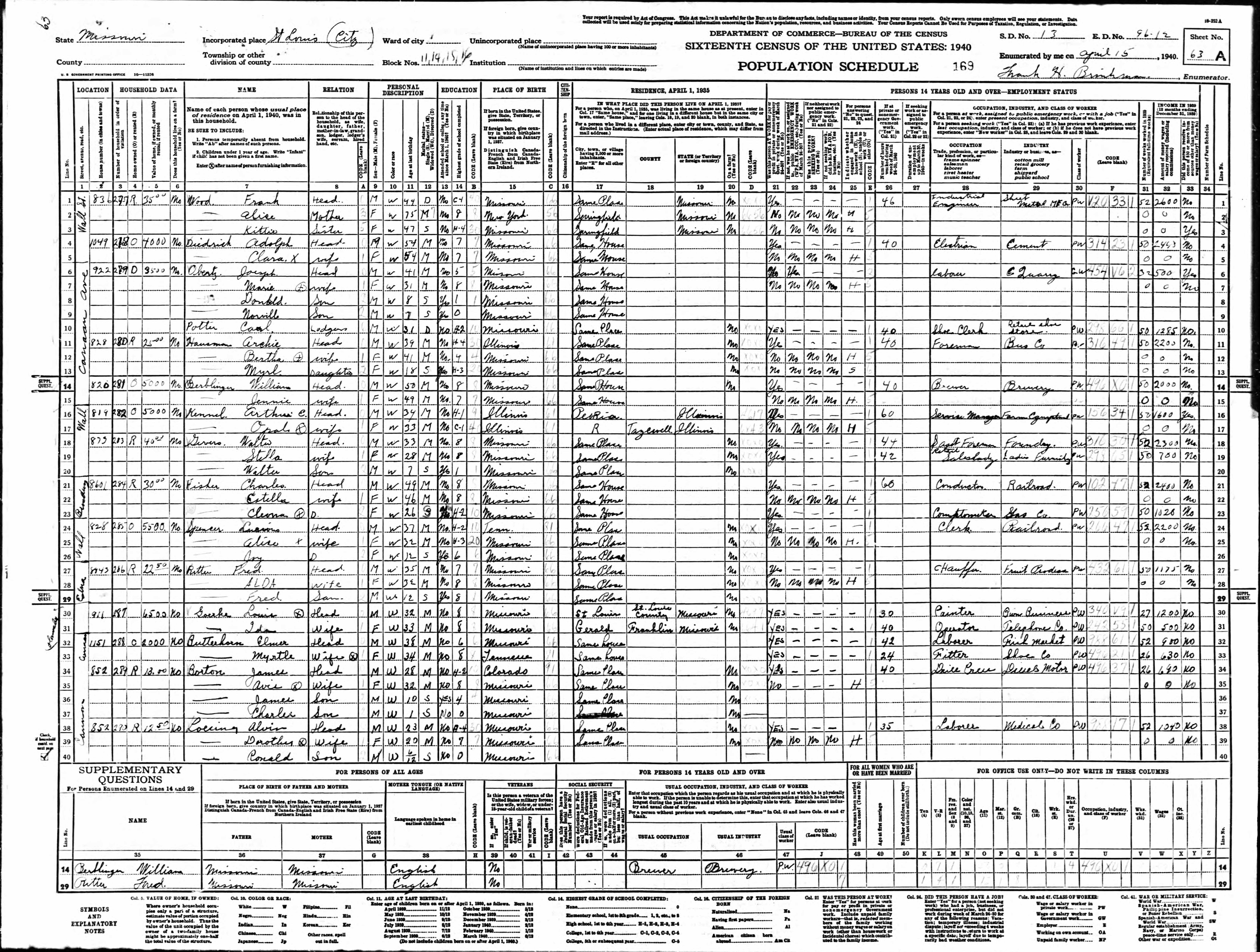 Hausman Family 1940 Federal Census Missouri, Lines 11-13