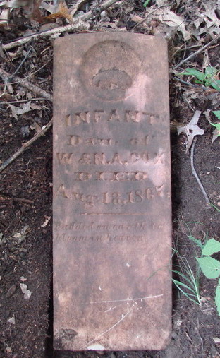 Infant Cox was born on August 13, 1867 in Greene, Illinois, USA. He/she died on August 13, 1867, at age 0, in Greene, Illinois, USA. He/she was buried in Witt Cemetery #2, Rockbridge, Illinois.