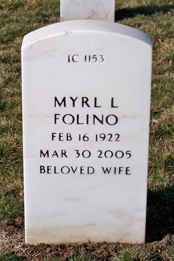 Frederick R. Folino, Jr., were married. She died on March 30, 2005, at age 83, in St. Louis, Missouri, USA. She was buried in Jefferson Barracks National Cemetery, Lemay, Missouri.