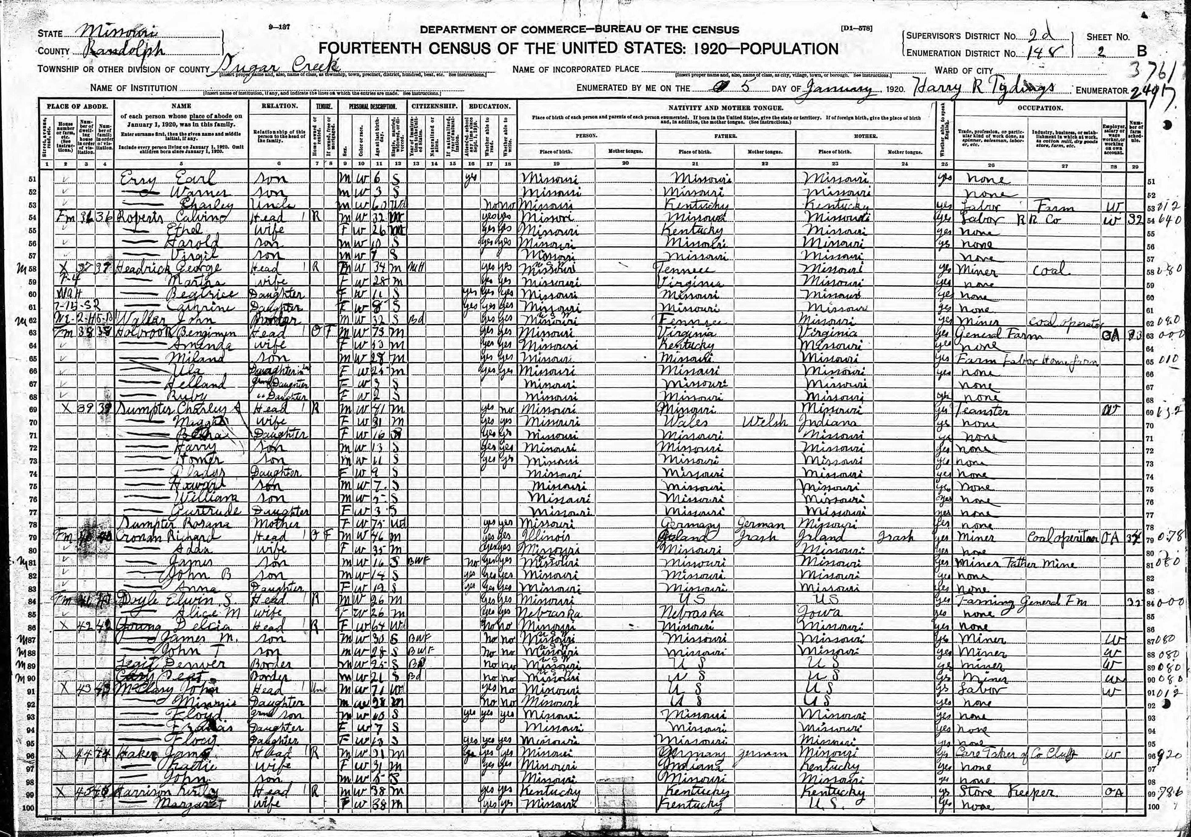 Young Family 1920 Federal Census Missouri, Lines 86-90
