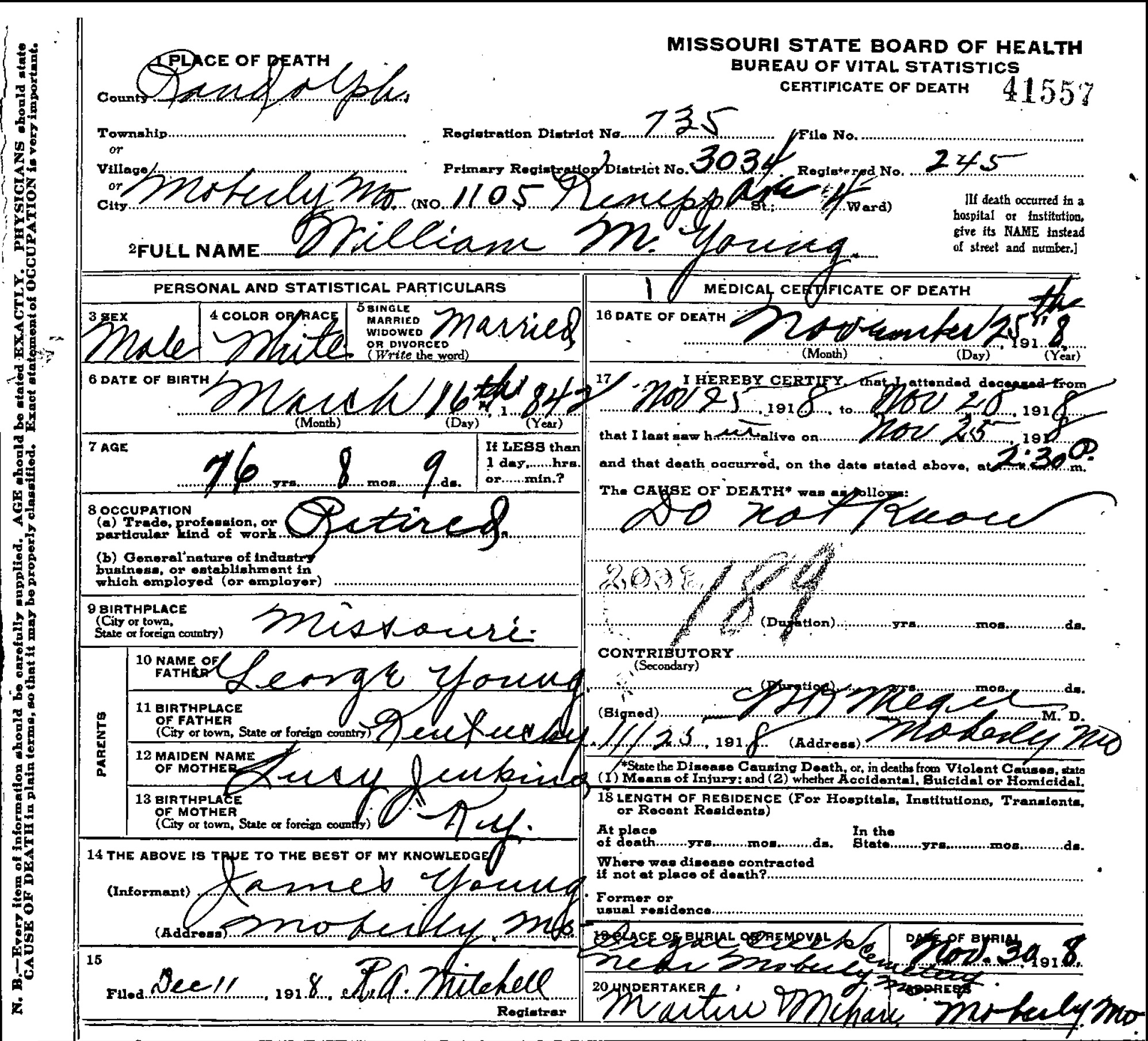 William M. Young was born on March 16, 1842 in Bates, Missouri, USA. He and