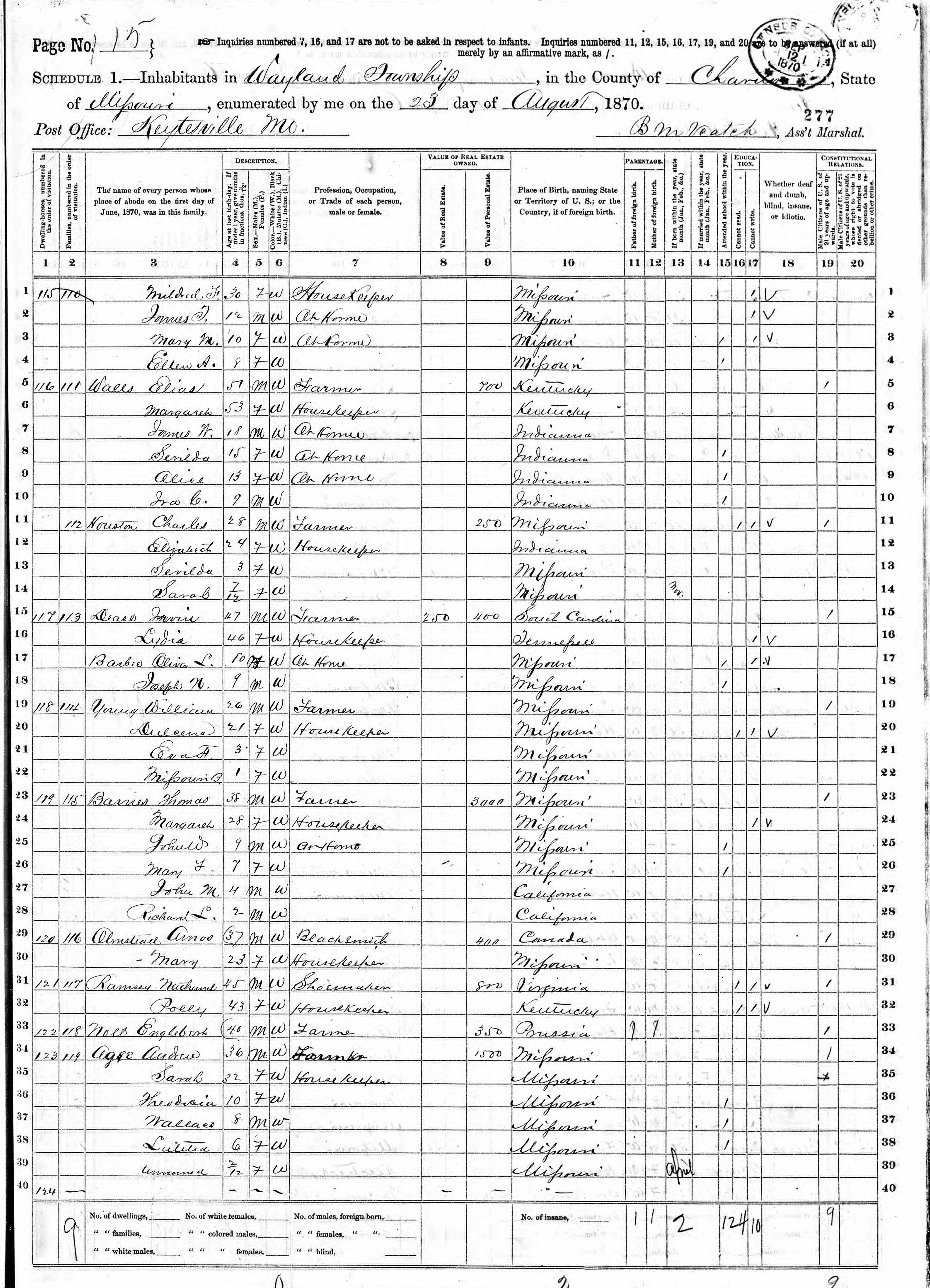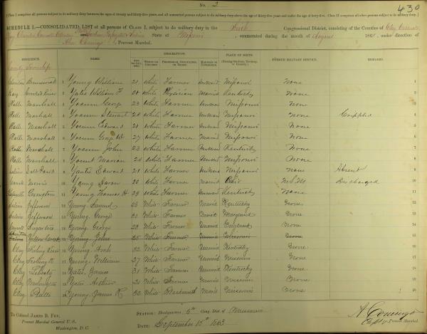 Young Family 1870 Federal Census Missouri, Lines 19-22