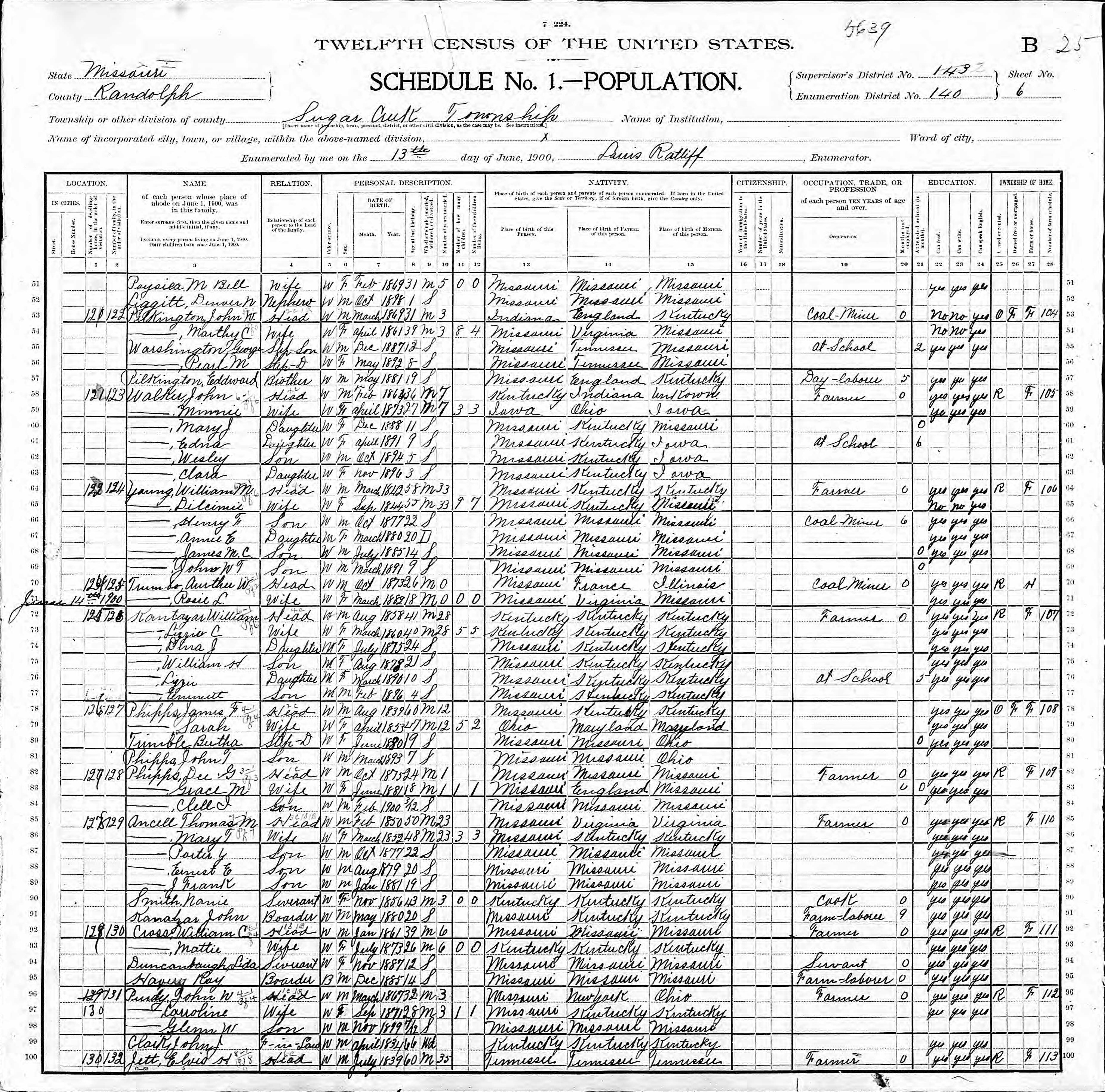 Young Family 1900 Federal Census Missouri, Lines 64-69