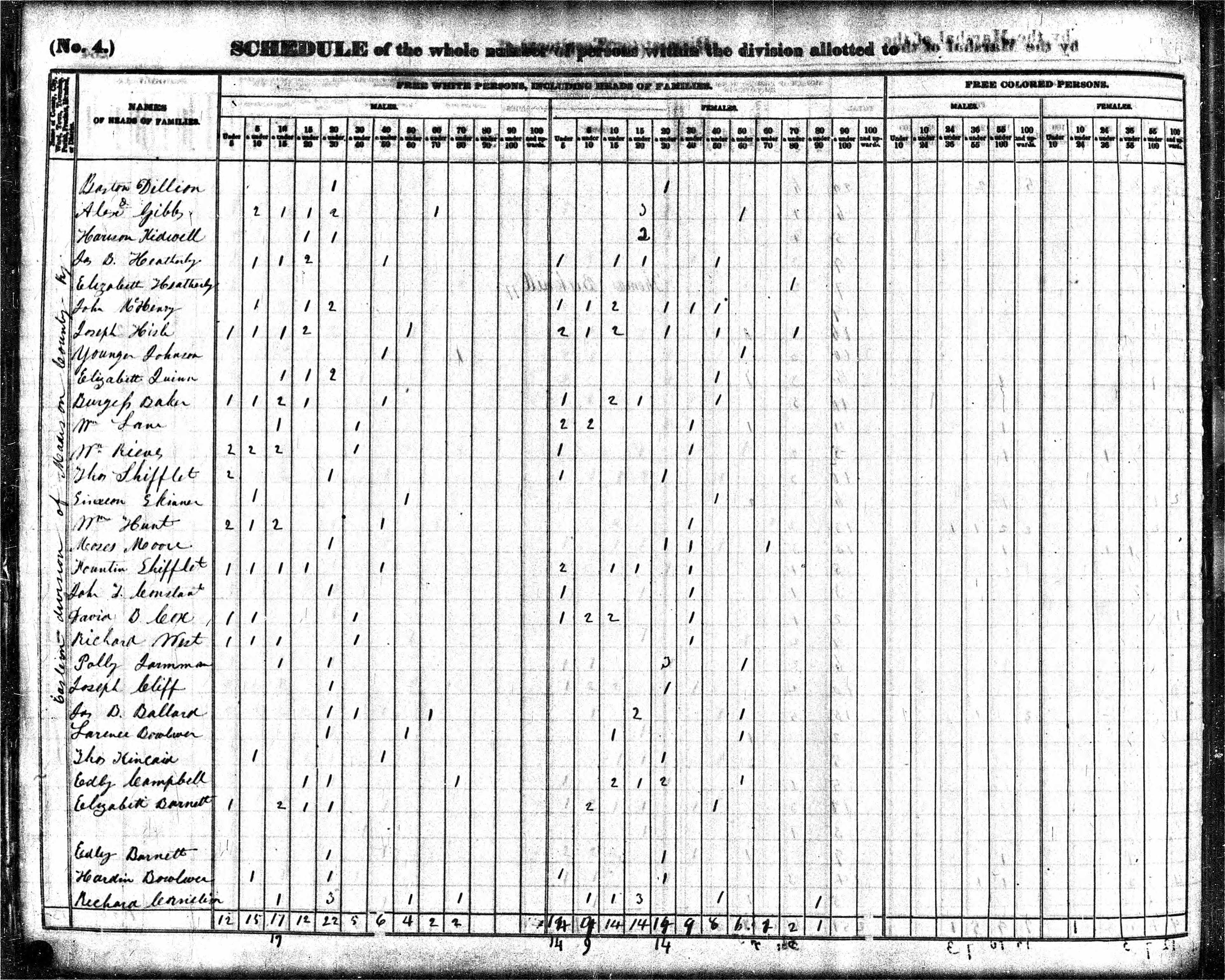 Thomas Shifflett Family 1840 Federal Census Kentucky