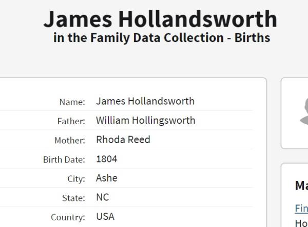 James Hollingsworth was born in 1801 in Ashe, North Carolina, USA. He and