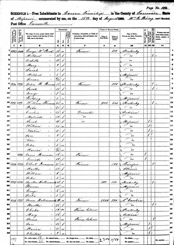 Hollandsworth Family 1860 Federal Census Missouri, Lines 33-40
