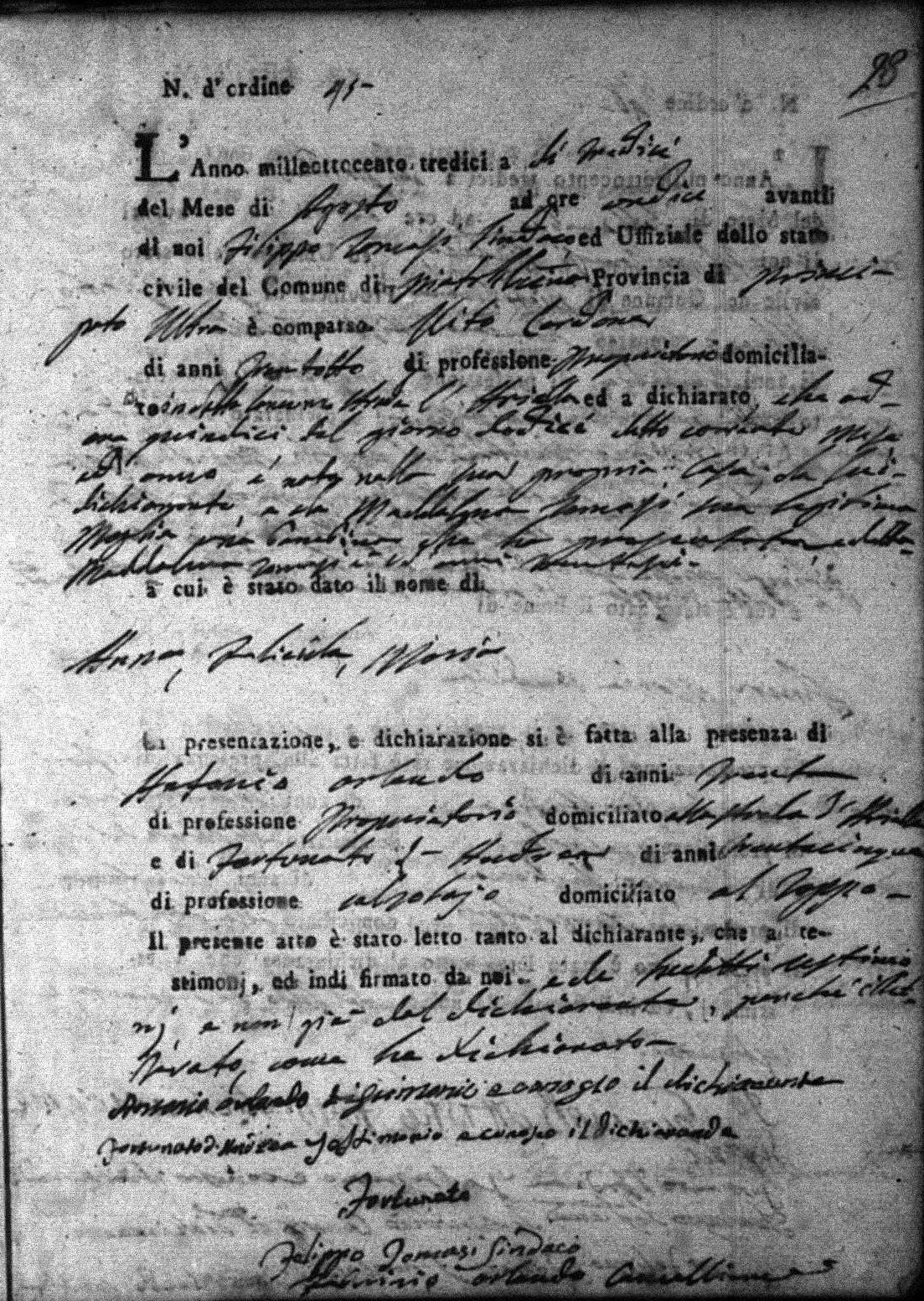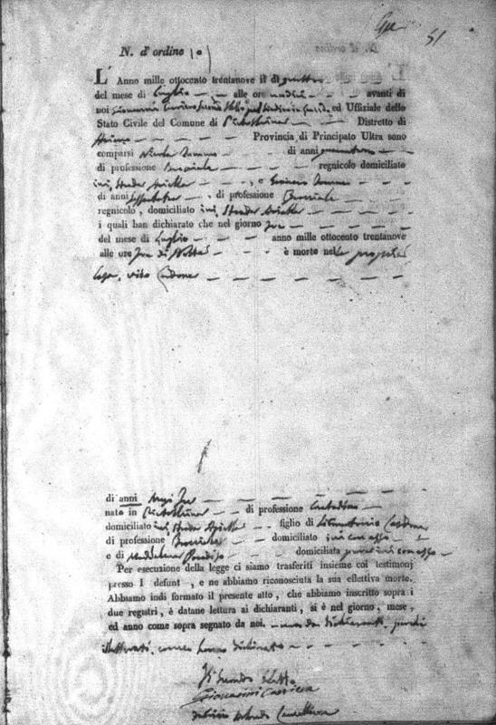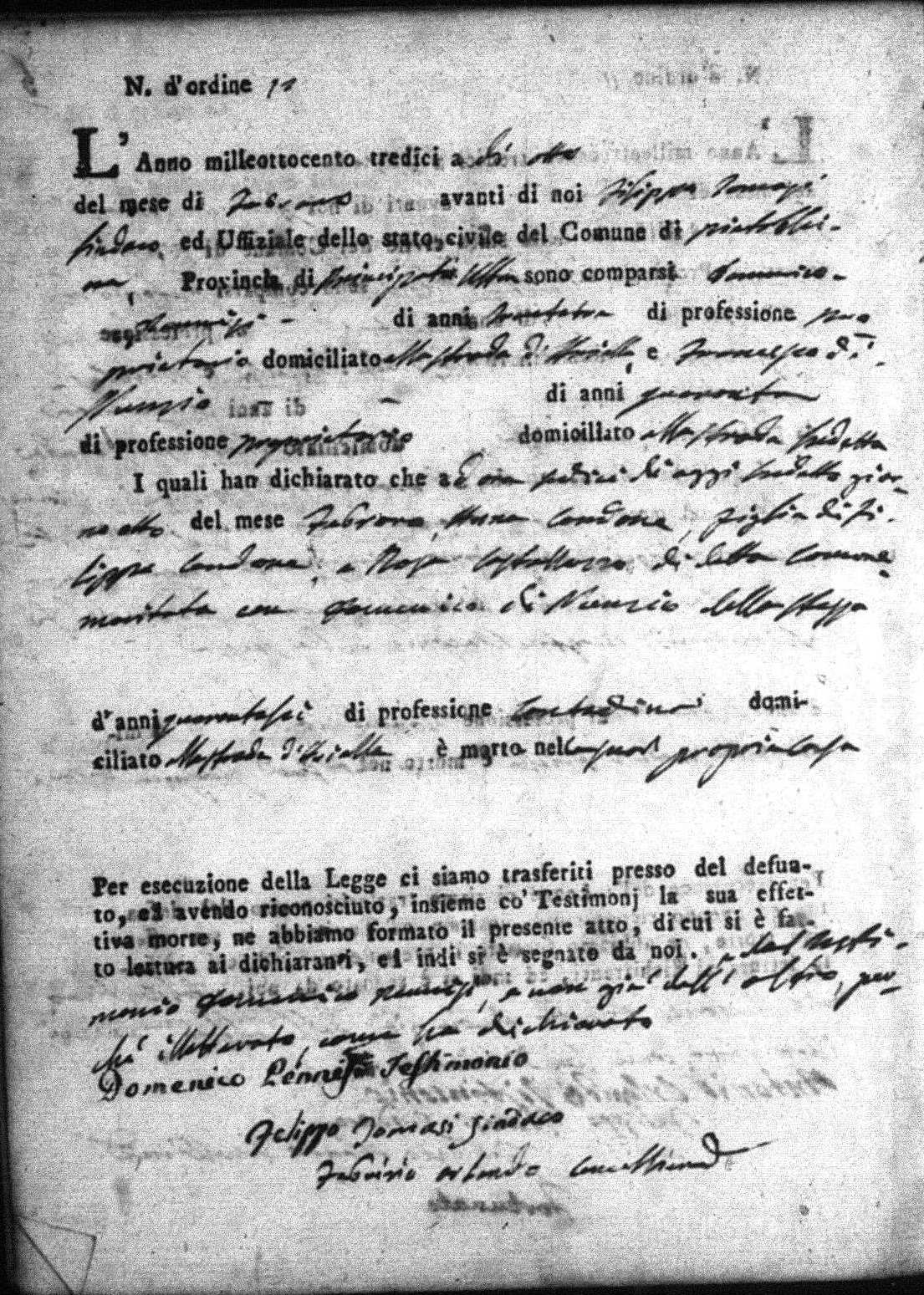 Nicola Maria Cardone were married on August 9, 1837 in Pietrelcina, Benevento, Campania, Italy. She died.