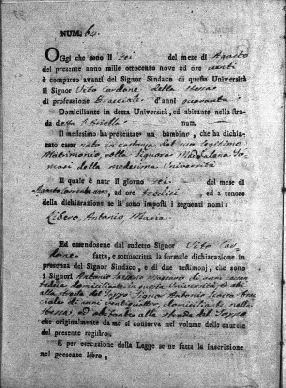 Libero Antonio Cardone were married on December 5, 1836 in Pietrelcina, Benevento, Campania, Italy. She died.
