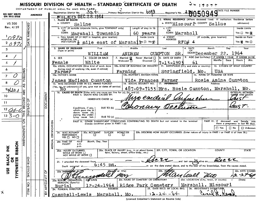 William Henry Cumpton was born in 1906 in Missouri, USA. He died.