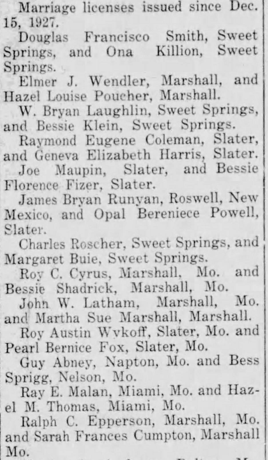 1928 Marriage License Announcement Article