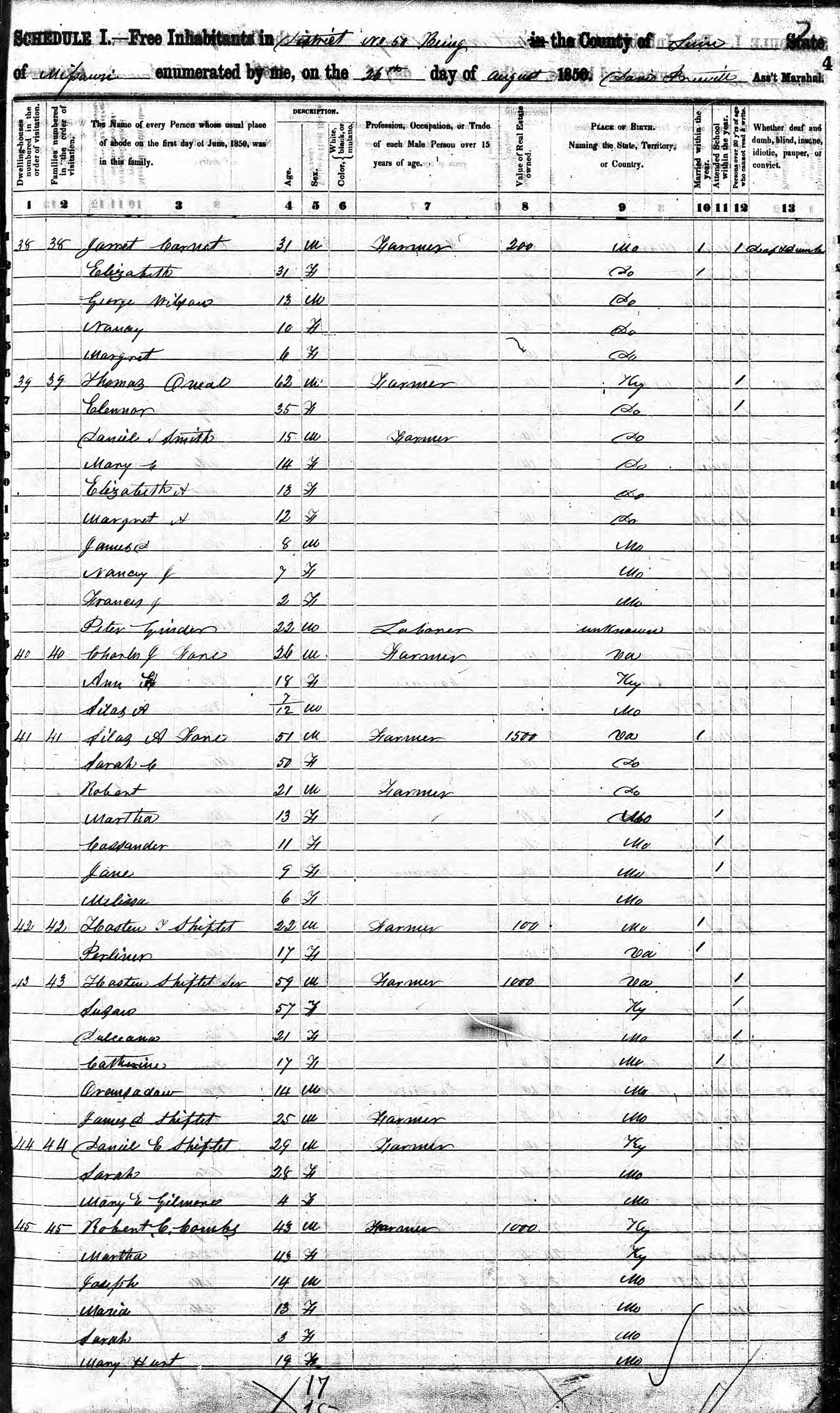 Shifflett Family 1850 Federal Census Missouri, Lines 34-36