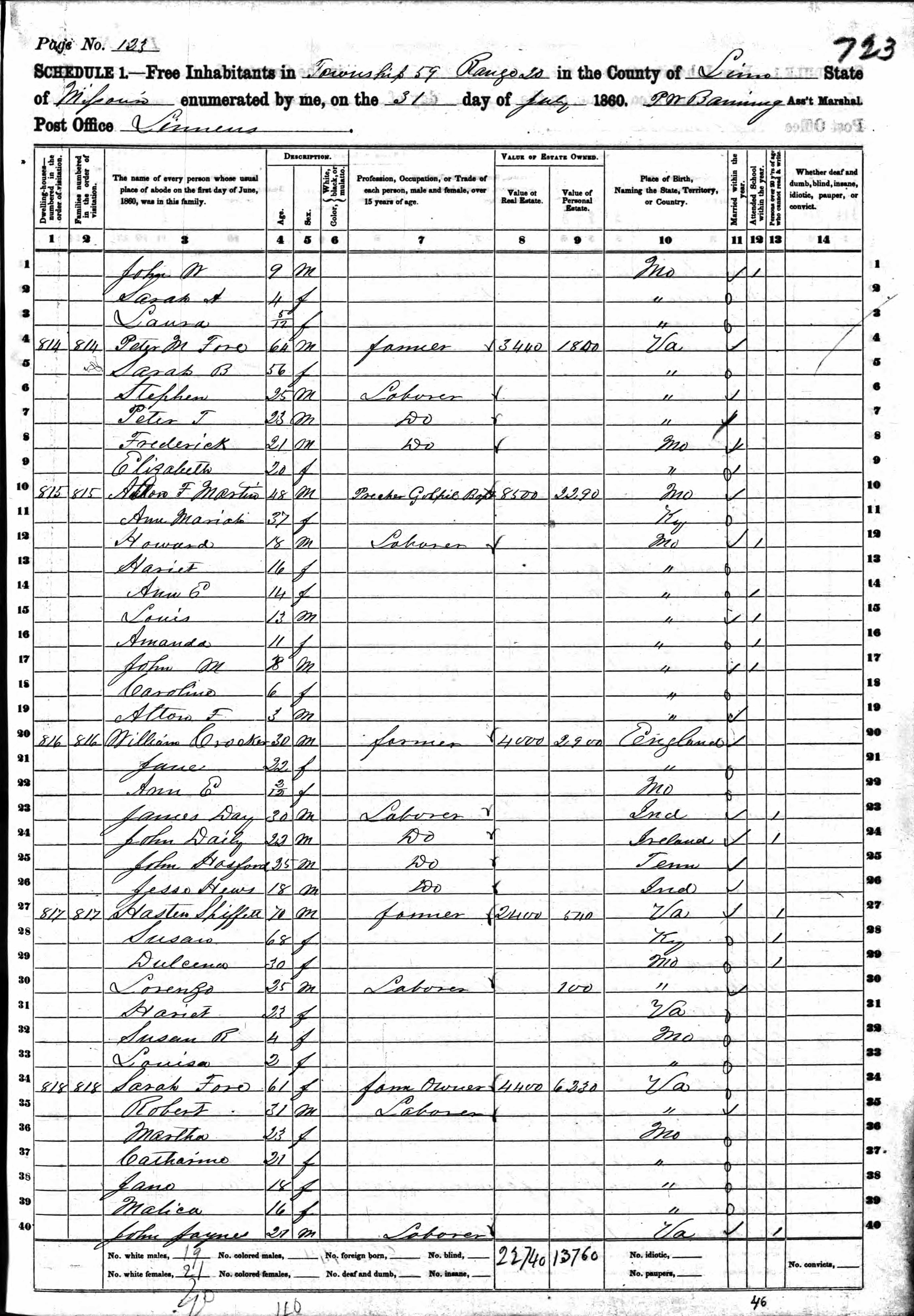 Shifflett Family 1860 Federal Census Missouri, Lines 27-33