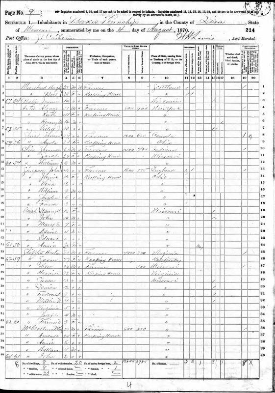 Shifflett Family 1870 Federal Census Missouri, Lines 26-35