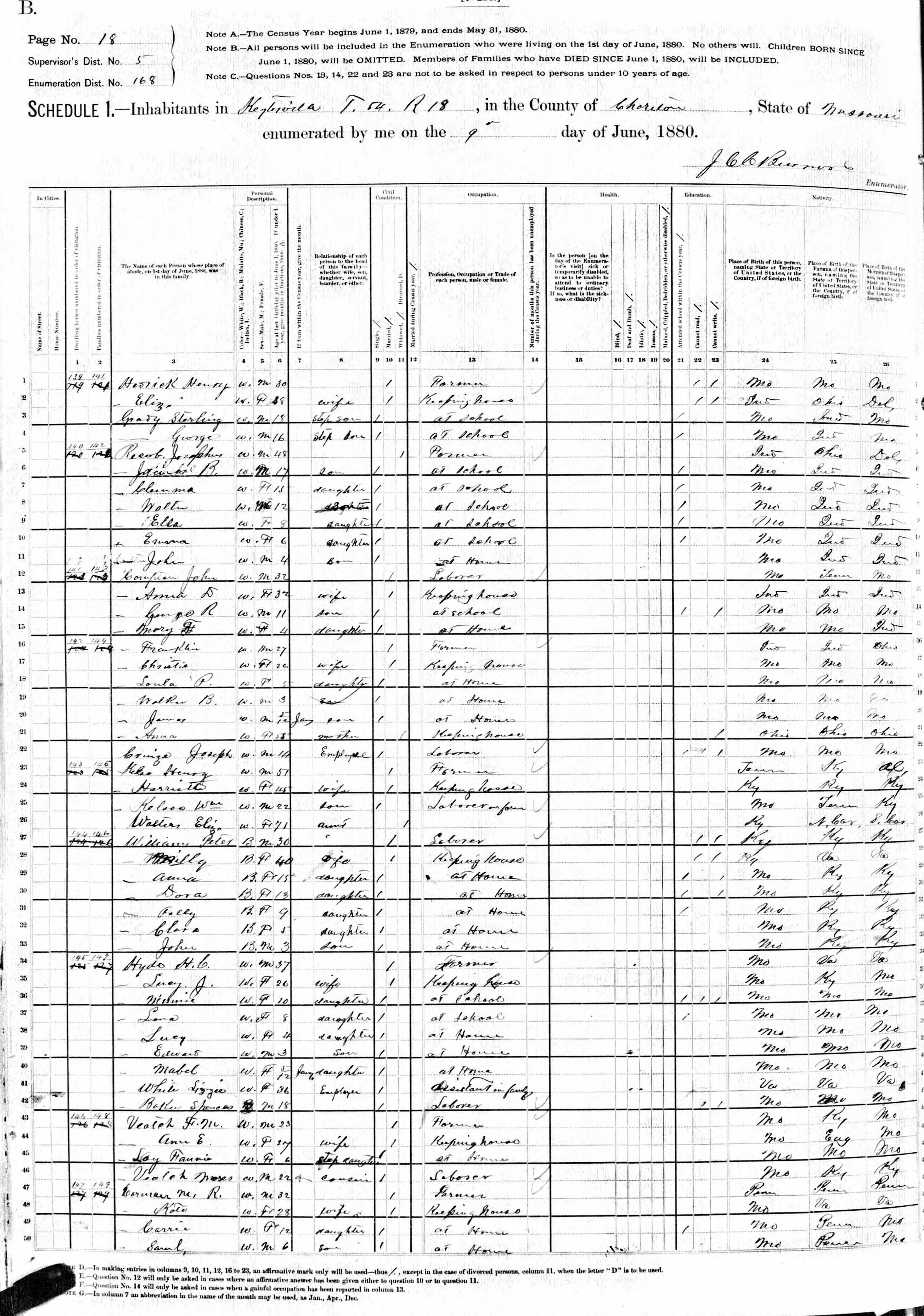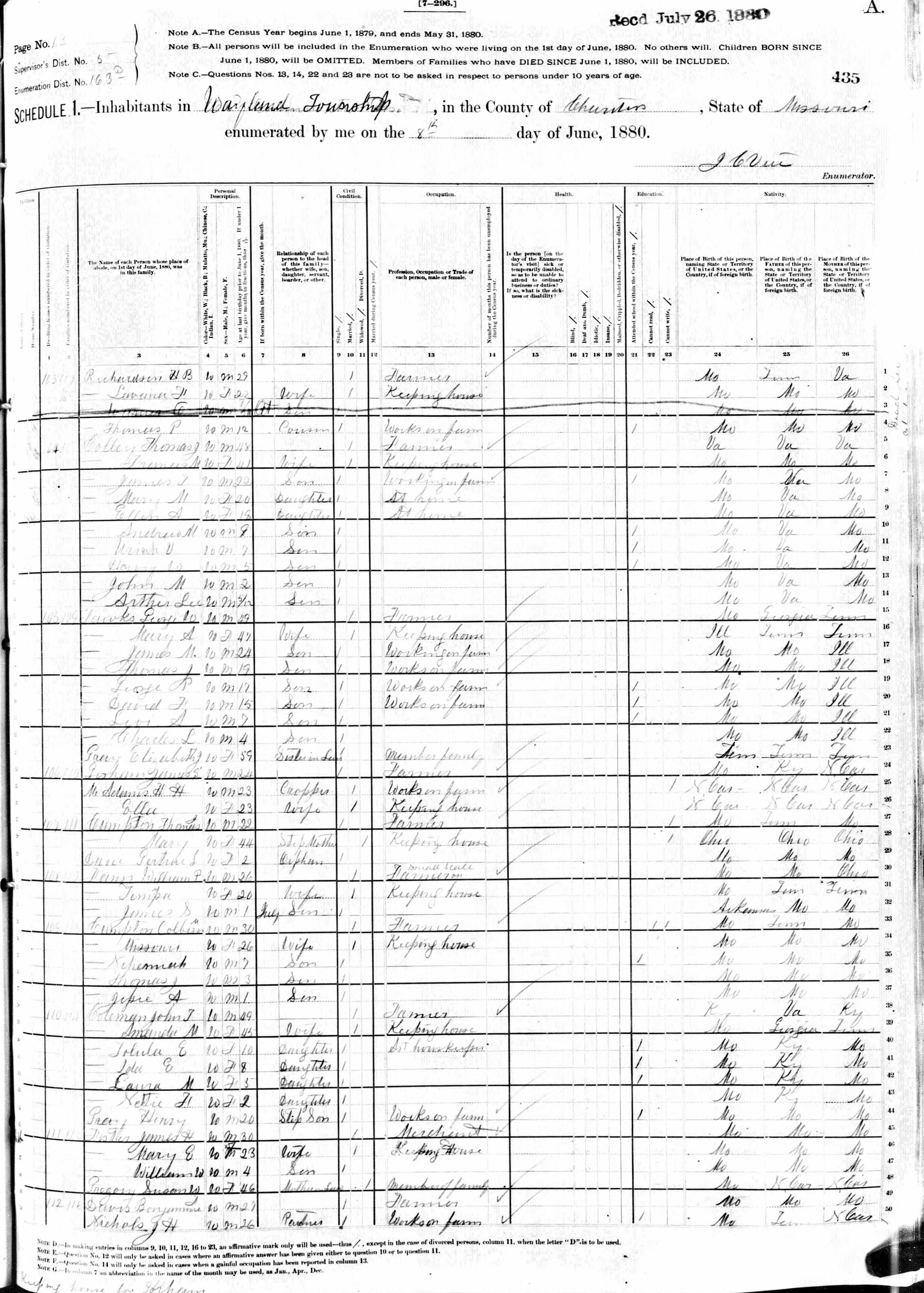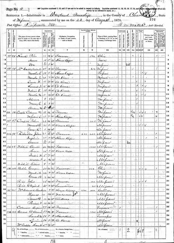 Cumpton Family 1880 Federal Census Missouri, Lines 12-22