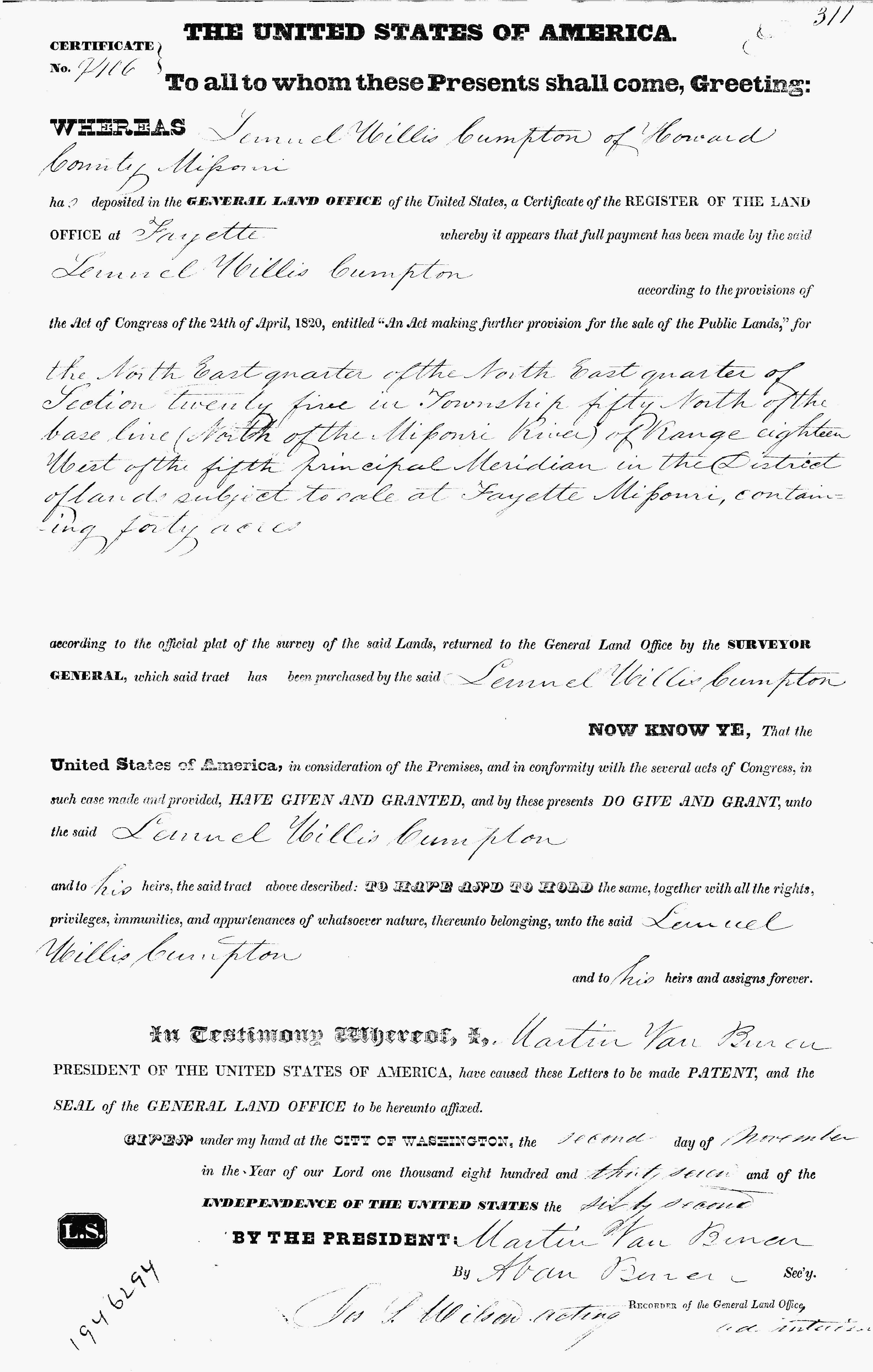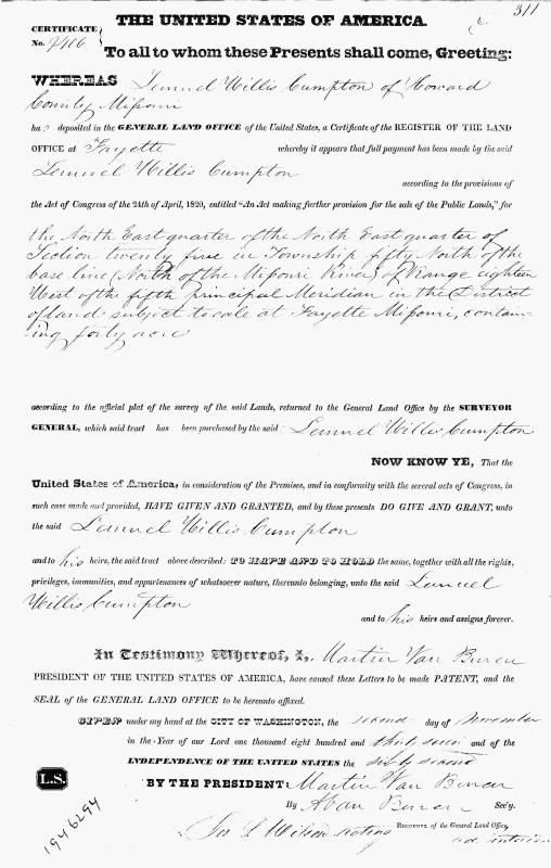 1837 Land Deed Record