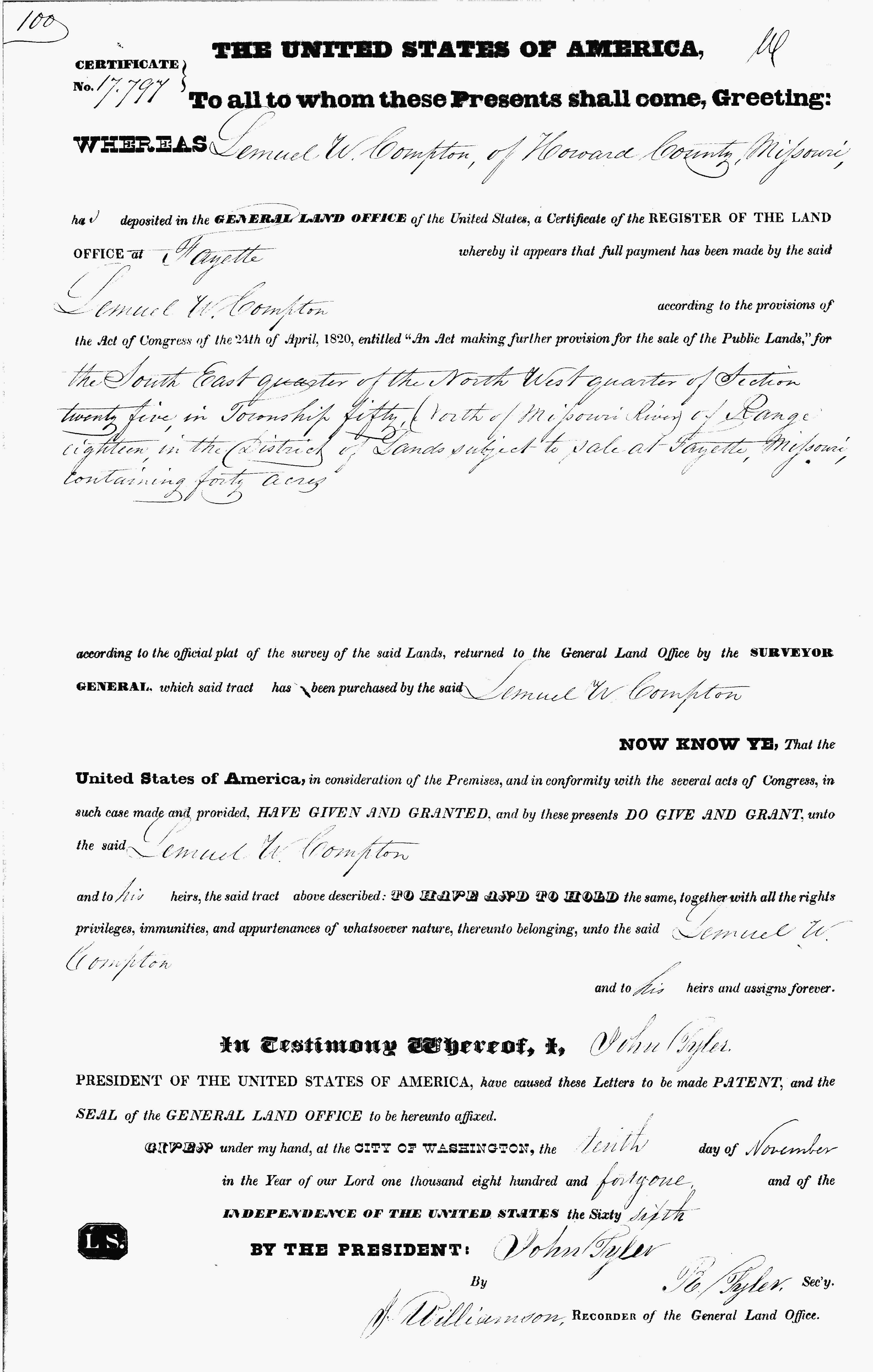 1848 Land Deed Record