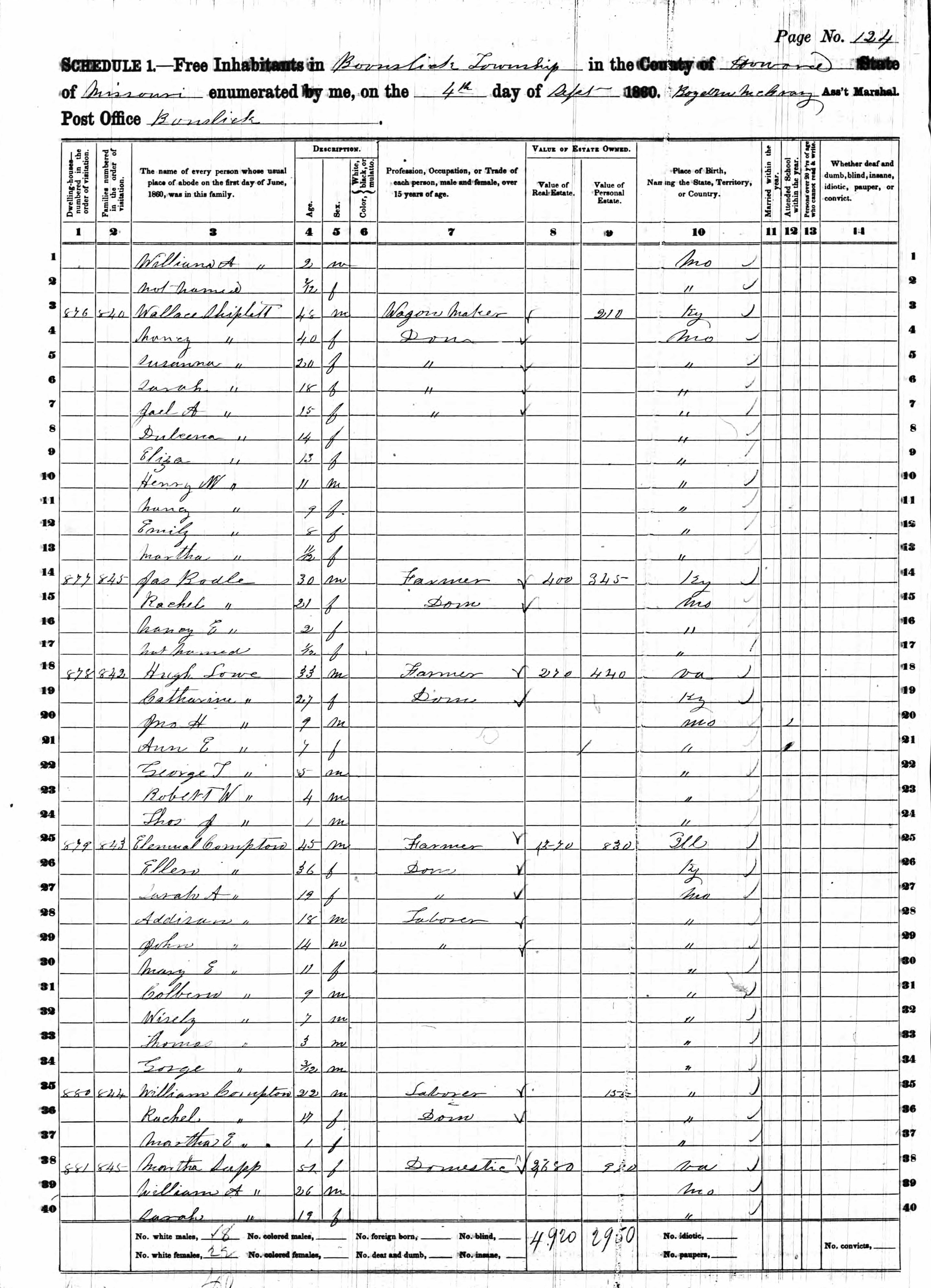 Cumpton Family 1860 Federal Census, Missouri, Lines 25-34