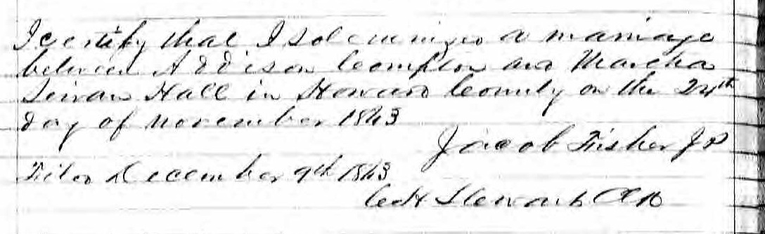 Addison Cumpton were married on November 24, 1863 in Howard, Missouri, USA. She died.