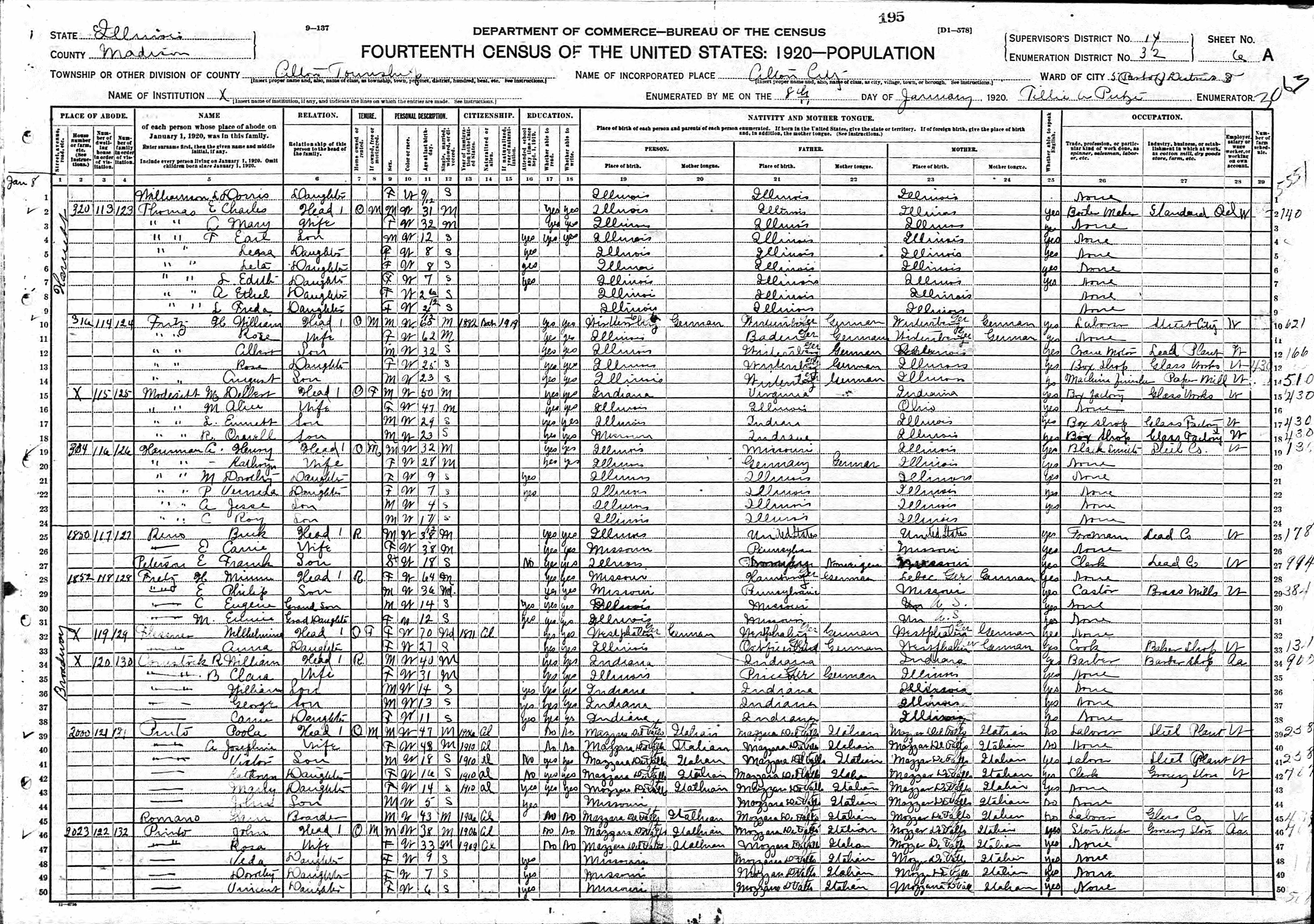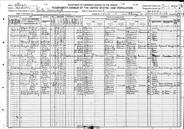 Hausman Family 1920 Federal Census Illinois, Lines 19-24