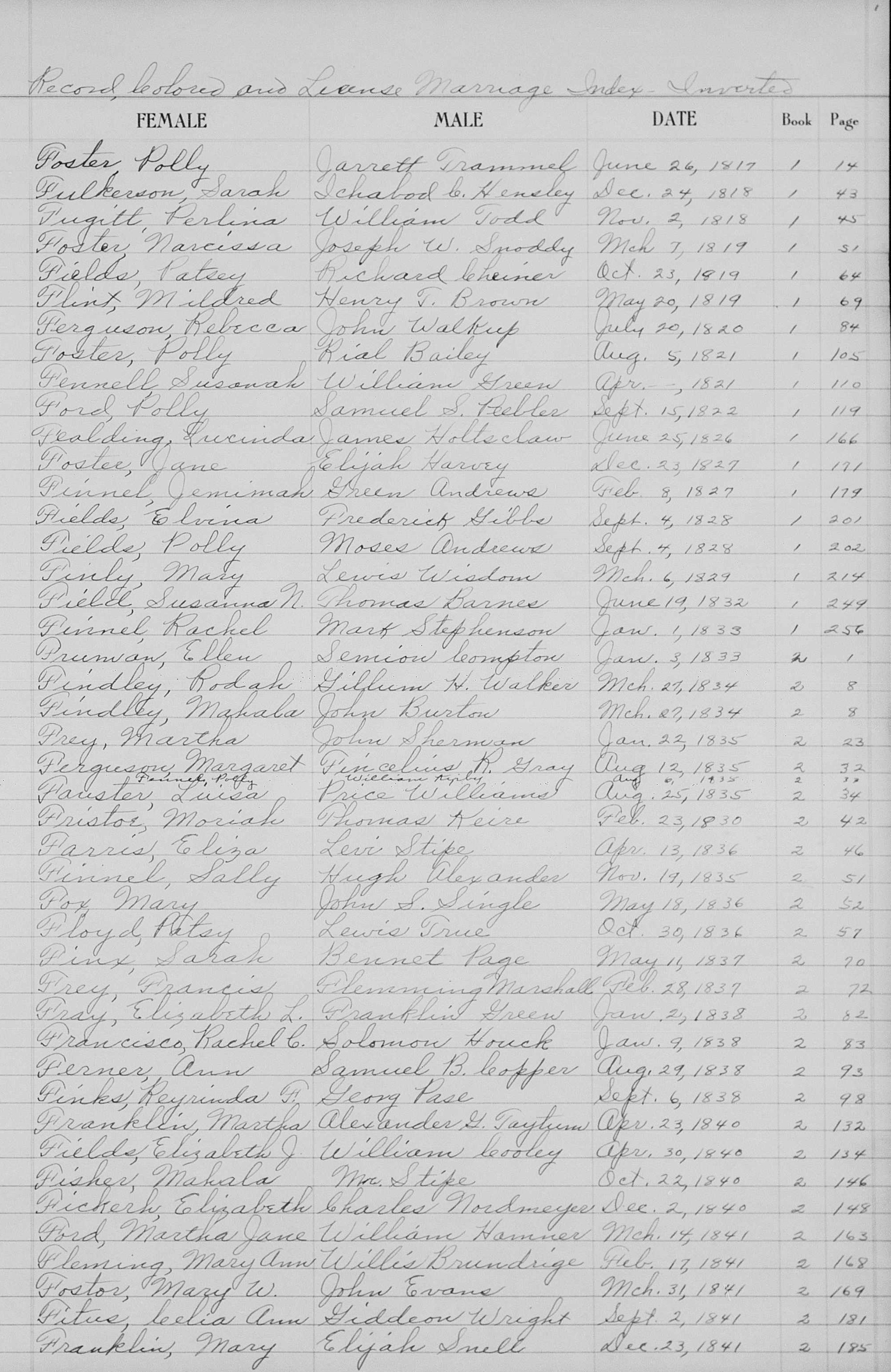 1833 Marriage Index