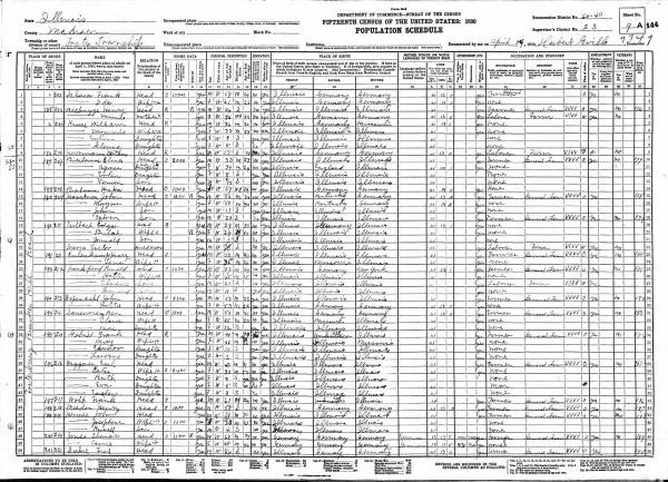 Hausman Family 1930 Federal Census Illinois, Lines 43-50