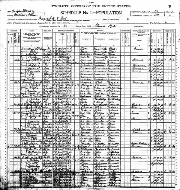 Cumpton Family 1900 Federal Census Oklahoma, Lines 55-62
