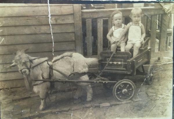 Katherine Fritz and Henry Hausman holding Betty and Bobby Hausman