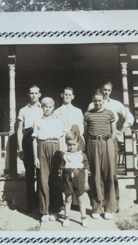 Jesse, Henry, Roy, Gene, Leo, and Bobby Dean Hausman in front