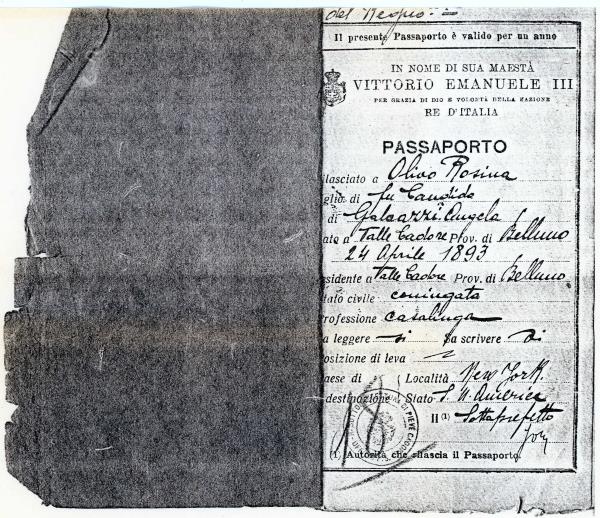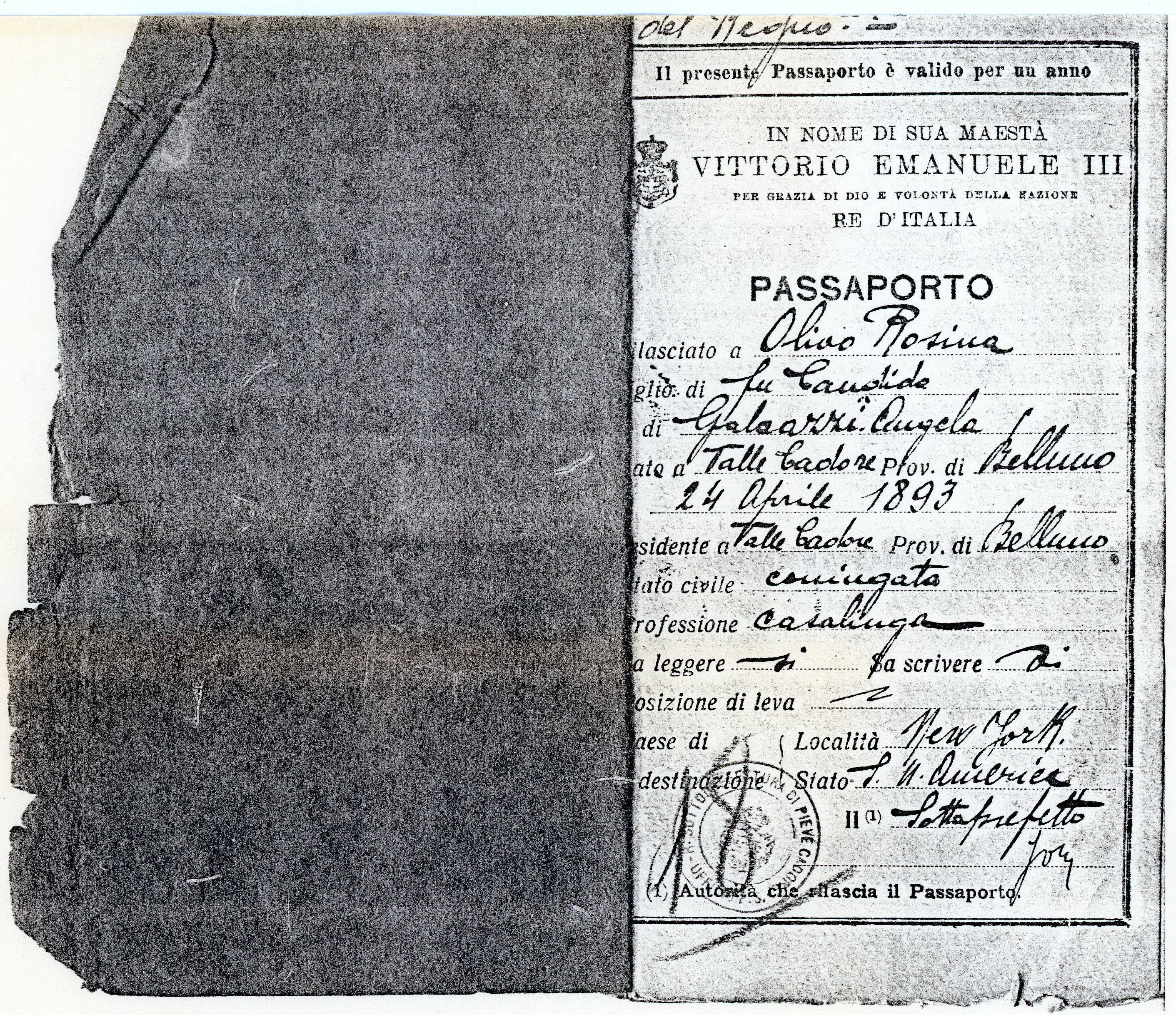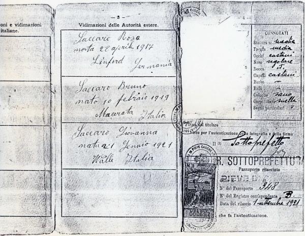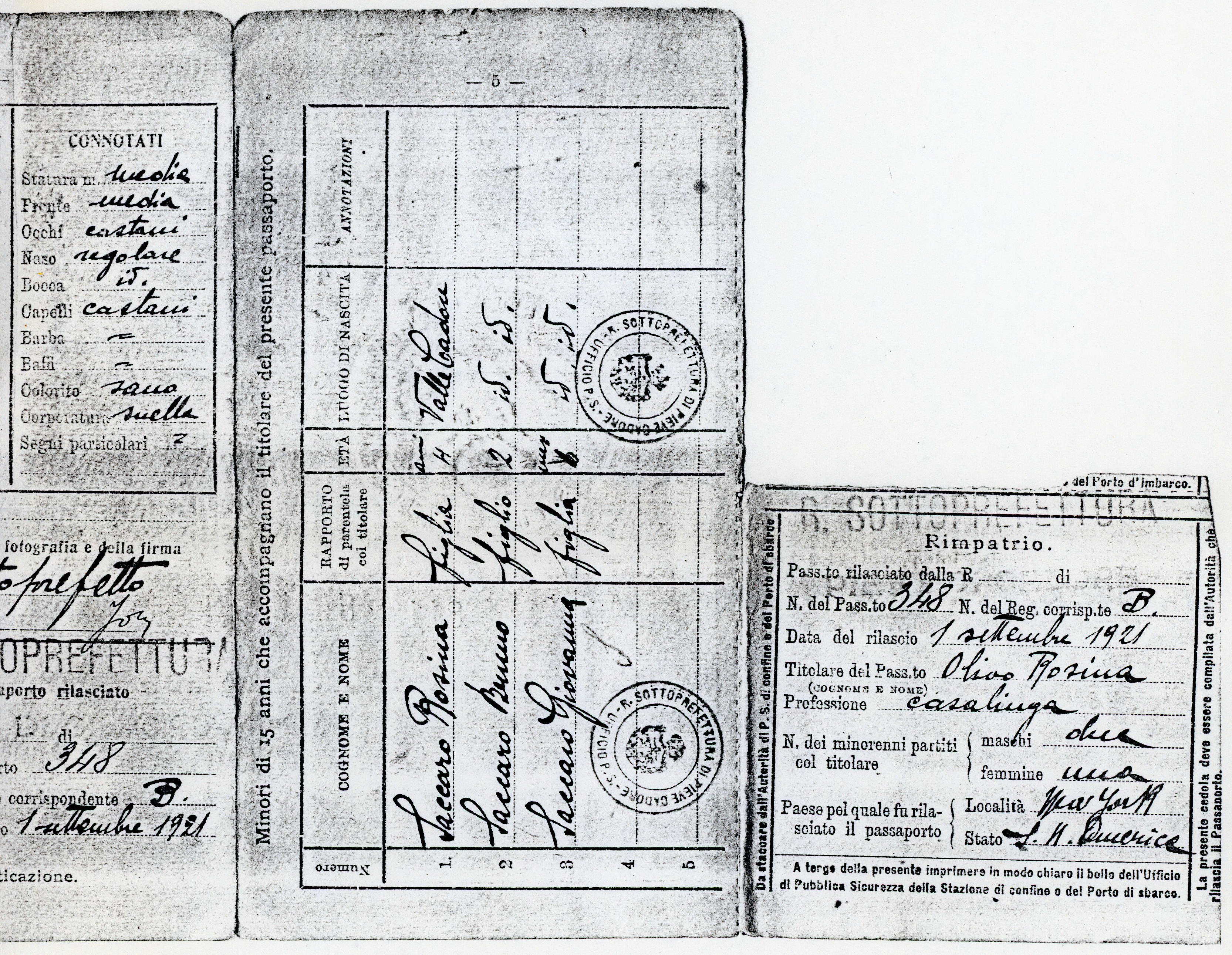 Rose Saccaro, Rosa Olivio holding Jennie Saccaro, and Bruno Saccaro - Passport Photo