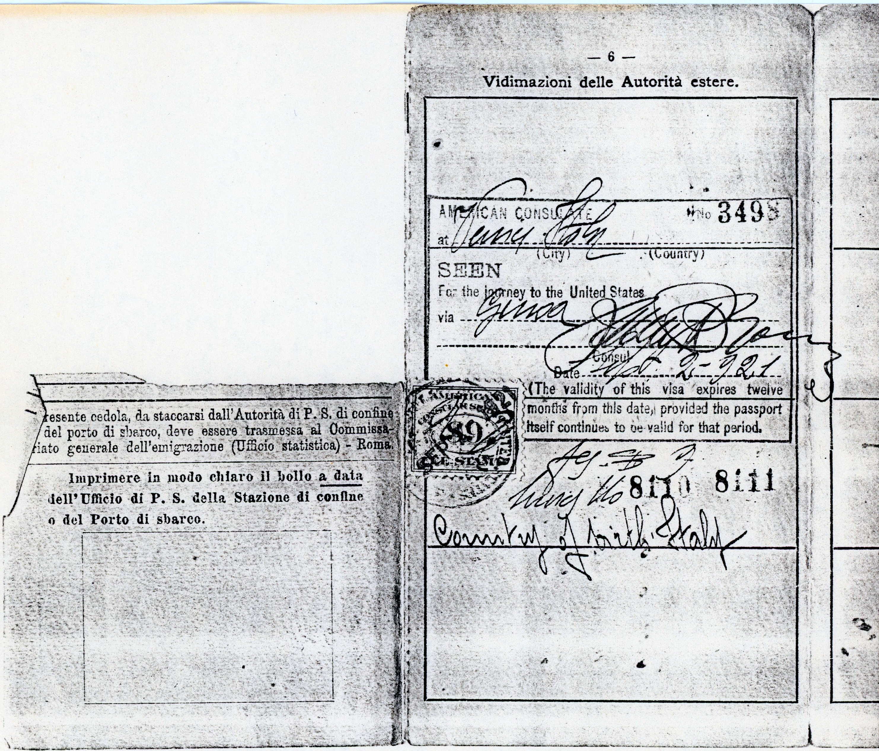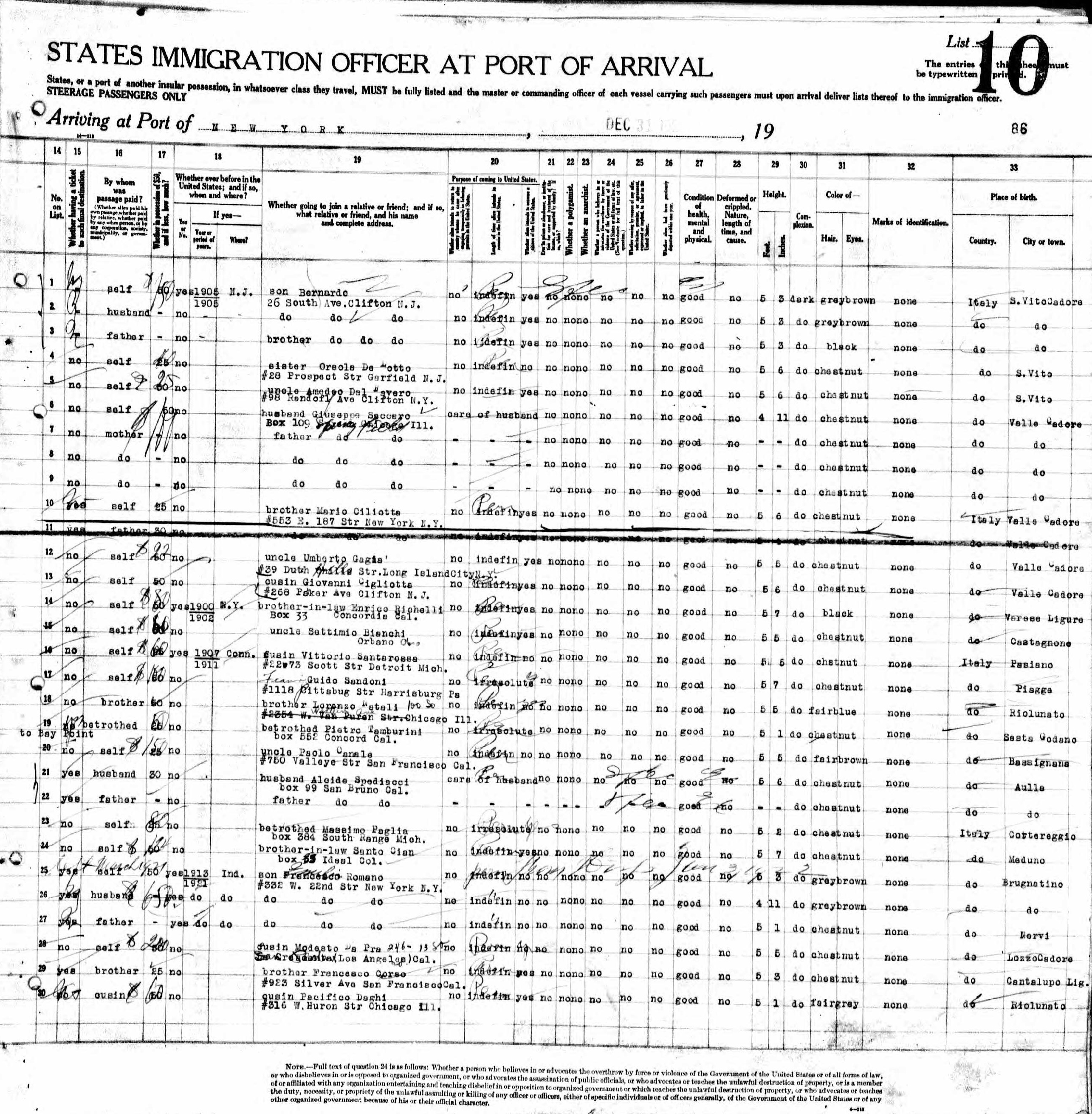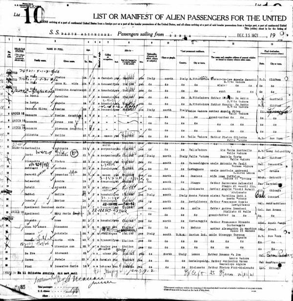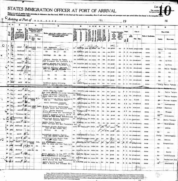Saccaro Family 1921 Ship Arrival Manifest, Lines 6-9