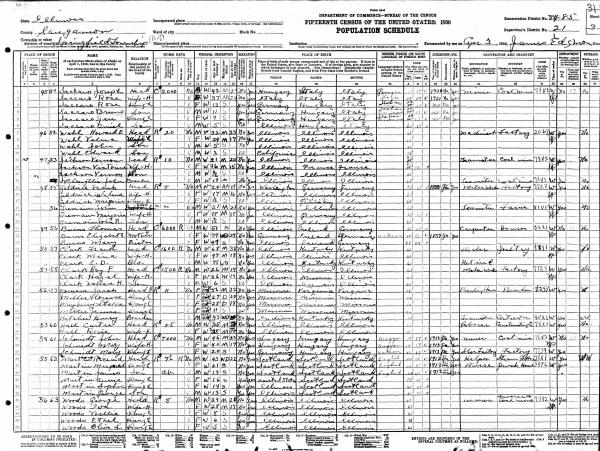 Saccaro Family 1930 Federal Census Illinois, Lines 1-6