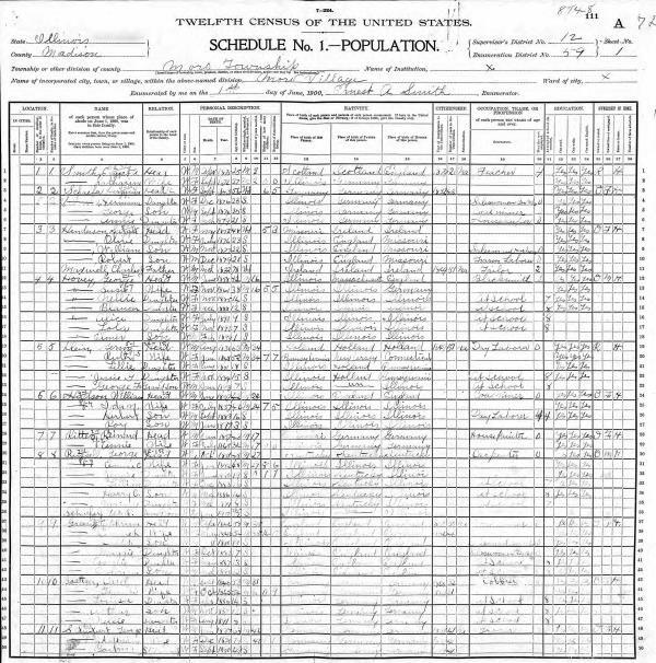 Schafer Family 1900 Federal Census Illinois, Lines 3-6
