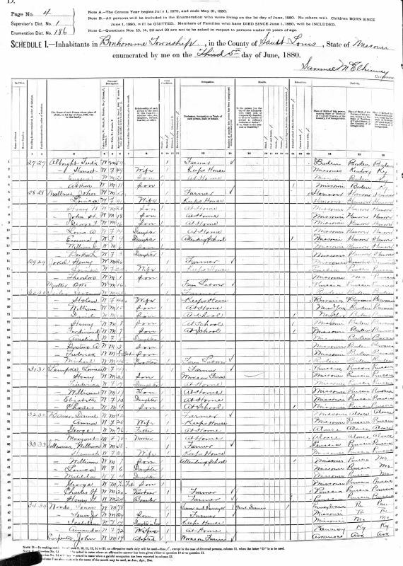 Wuellner Family 1880 Federal Census Missouri, Lines 5-13