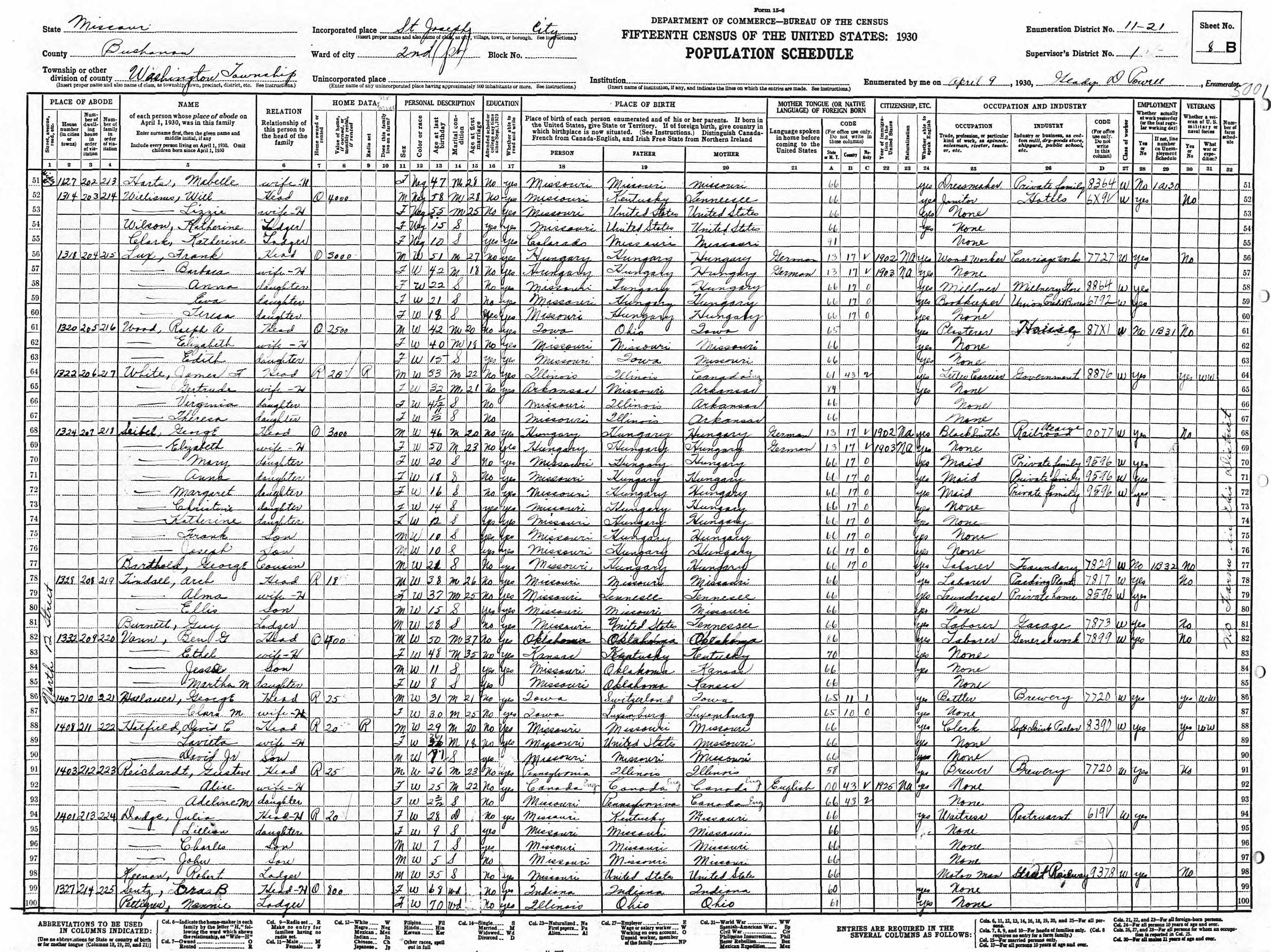 Hallauer Family 1930 Federal Census Missouri, Lines 86-87