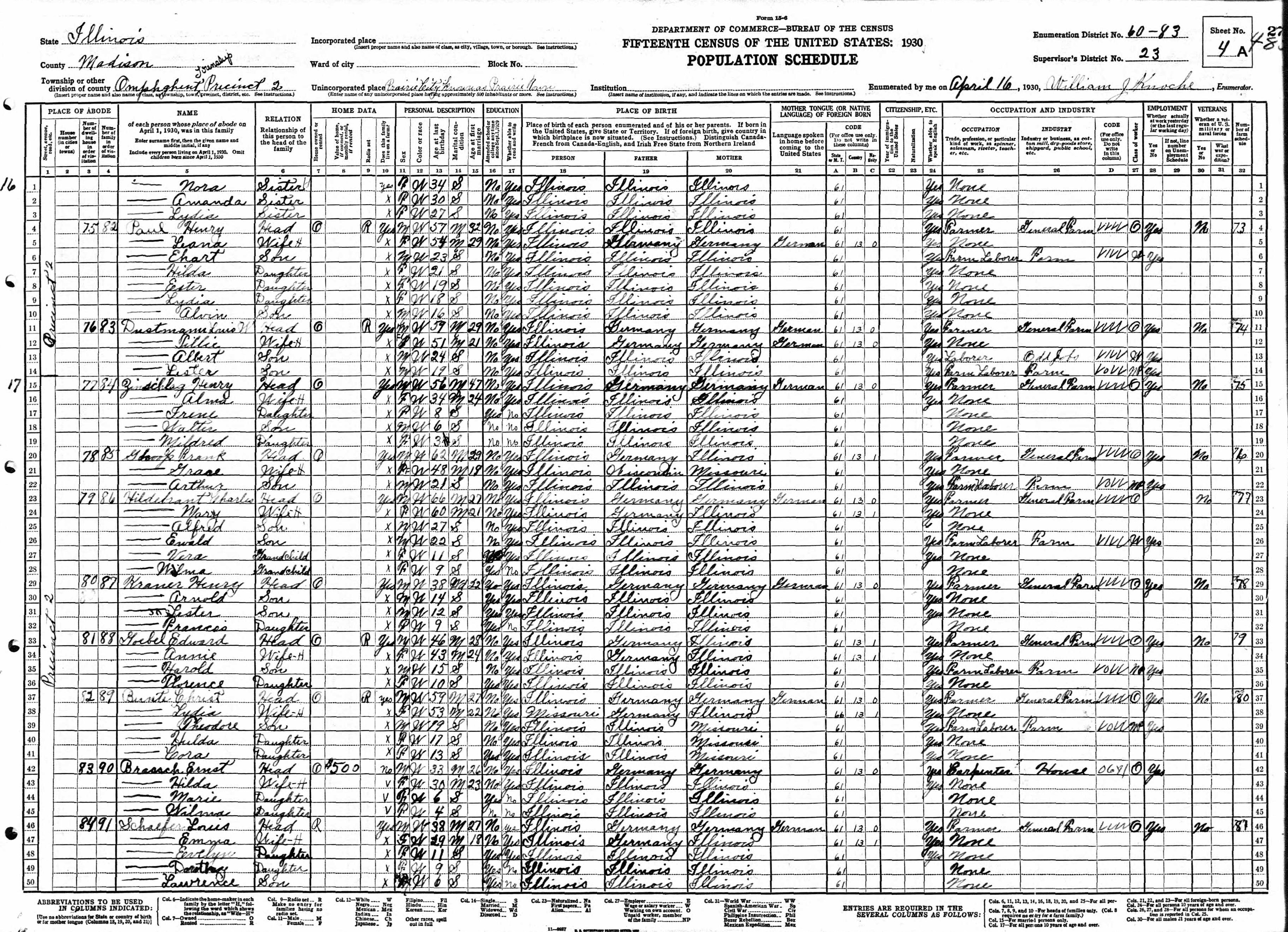 Goebel Family 1930 Federal Census Illinois, Lines 33-36