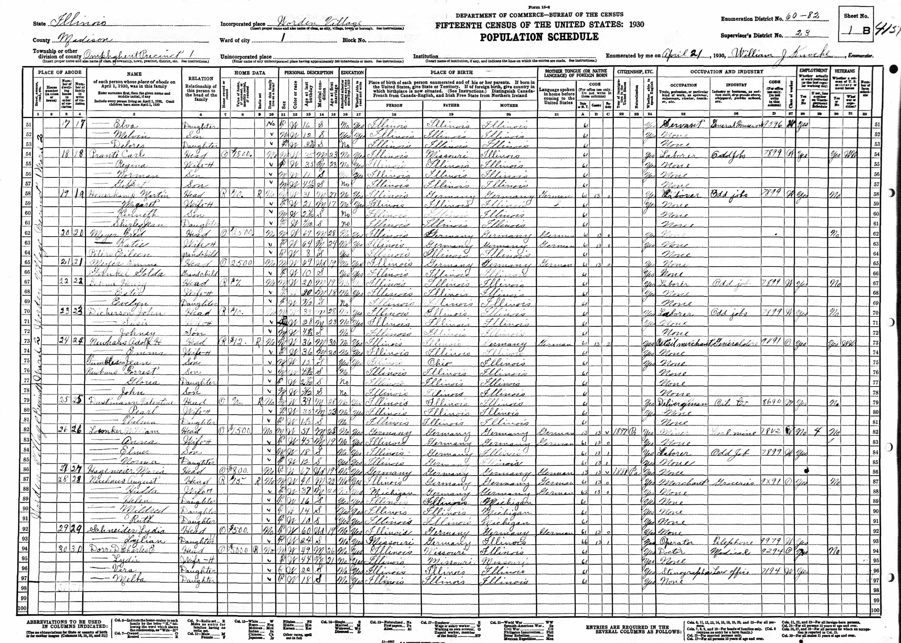 Dustmann Family 1930 Federal Census Illinois, Lines 11-14