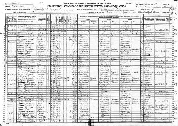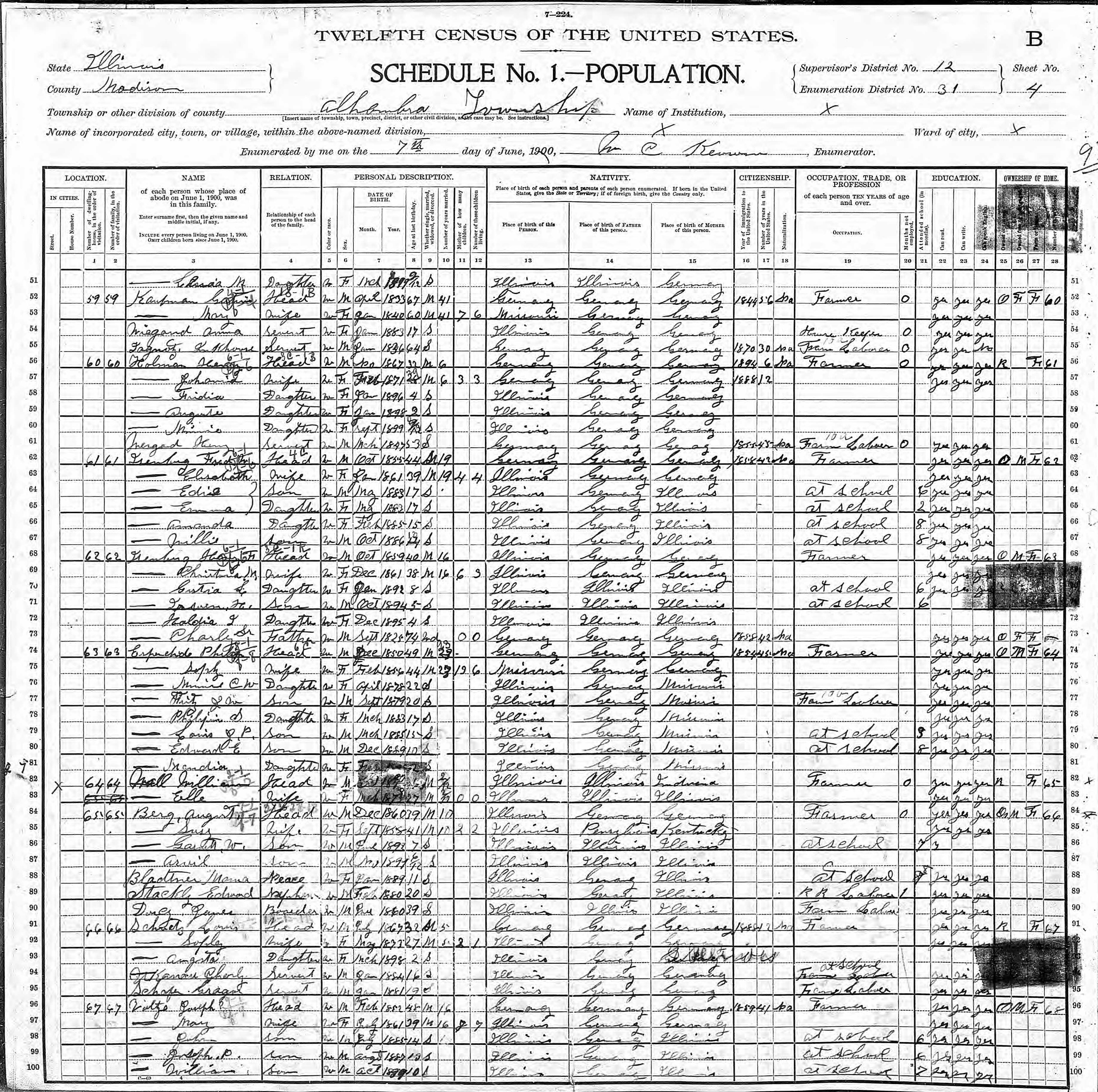 Heuer Family 1920 Federal Census Illinois, Lines 66-71