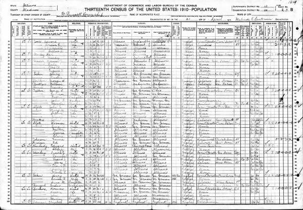 Bunte Family 1910 Federal Census Illinois, Lines 60-65