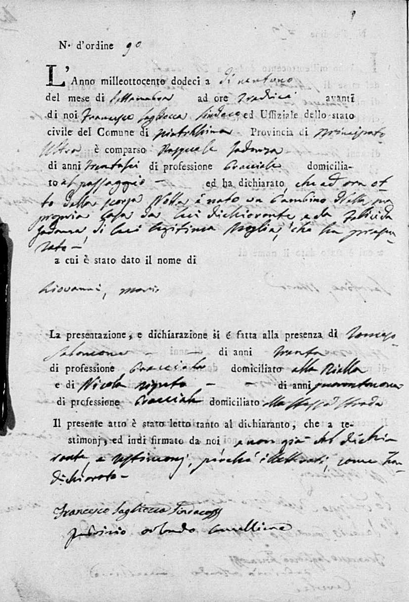 Maria Malia Orlando were married on March 7, 1840 in Pietrelcina, Benevento, Campania, Italy. He died.