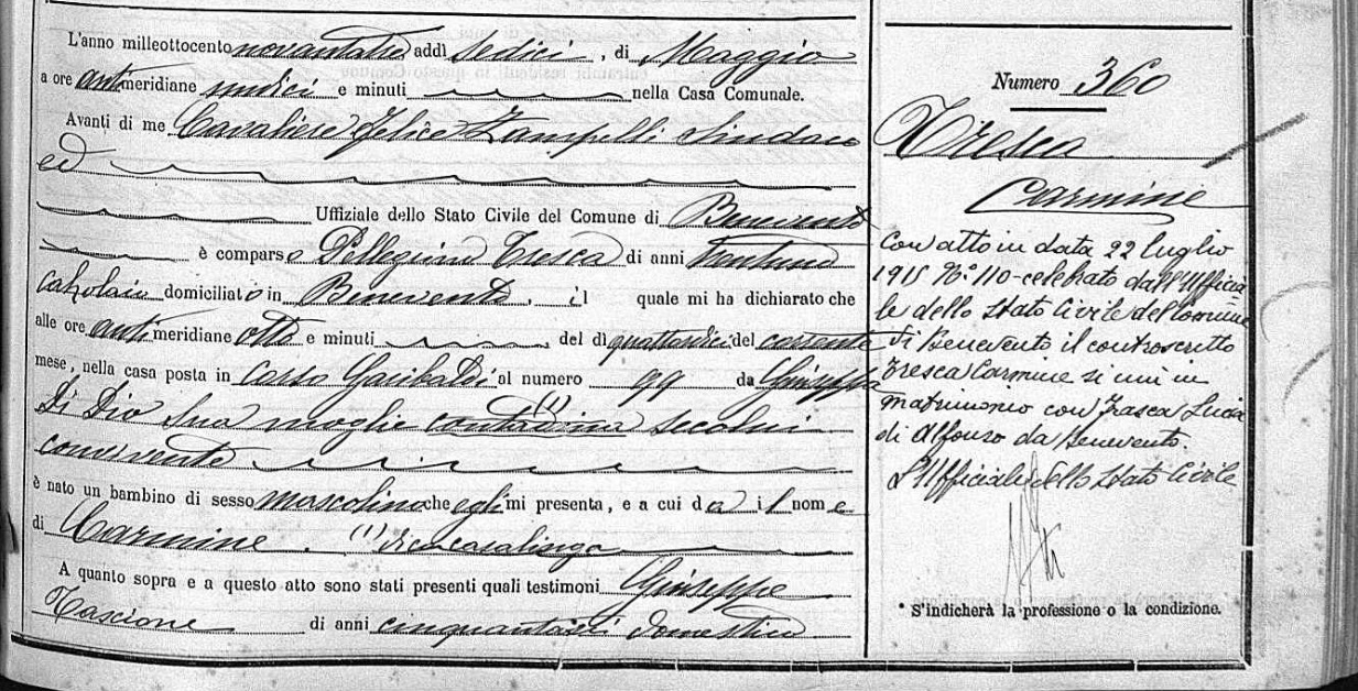 Carmine Tresca were married on July 22, 1915 in Benevento, Benevento, Campania, Italy. She and