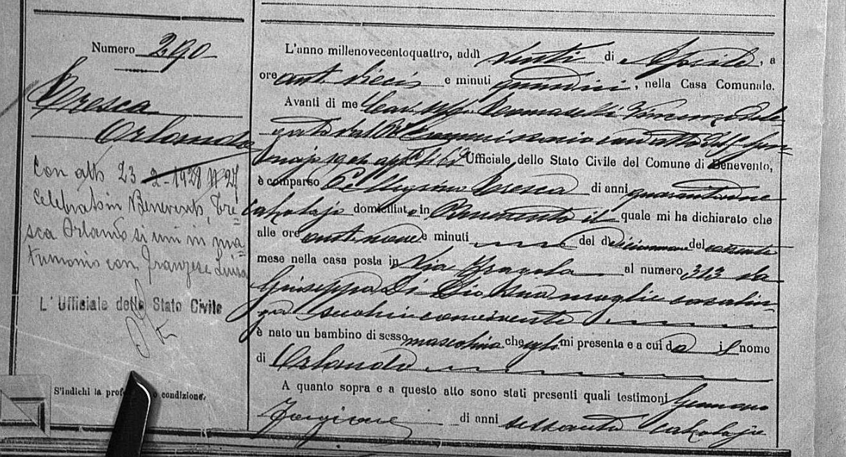 Orlando Tresca were married on February 23, 1928 in Benevento, Benevento, Campania, Italy. She died.