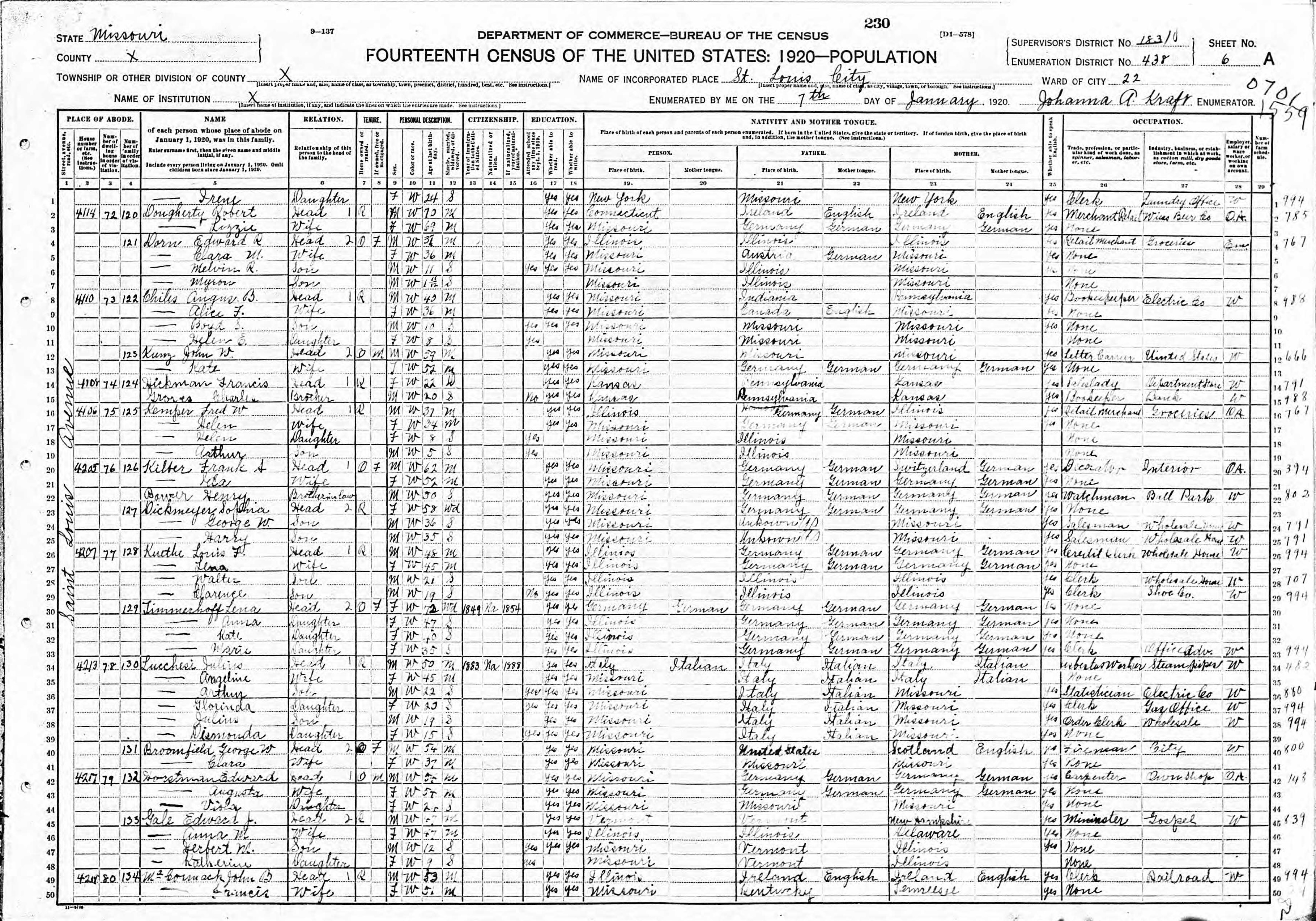 Kuethe Family 1930 Federal Census Missouri, Lines 12-13