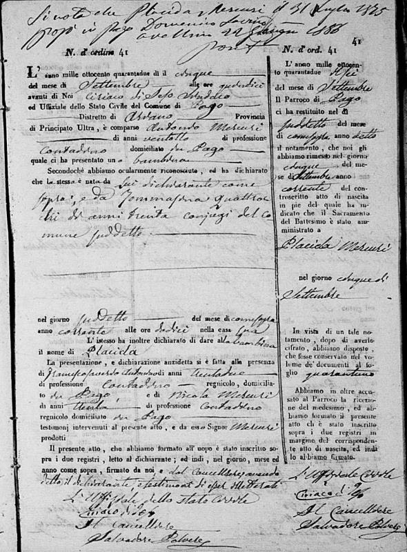 Placida Mercuri was born on September 5, 1842 in Pago Veiano, Benevento, Campania, Italy. She and