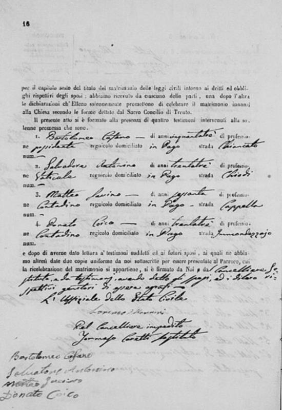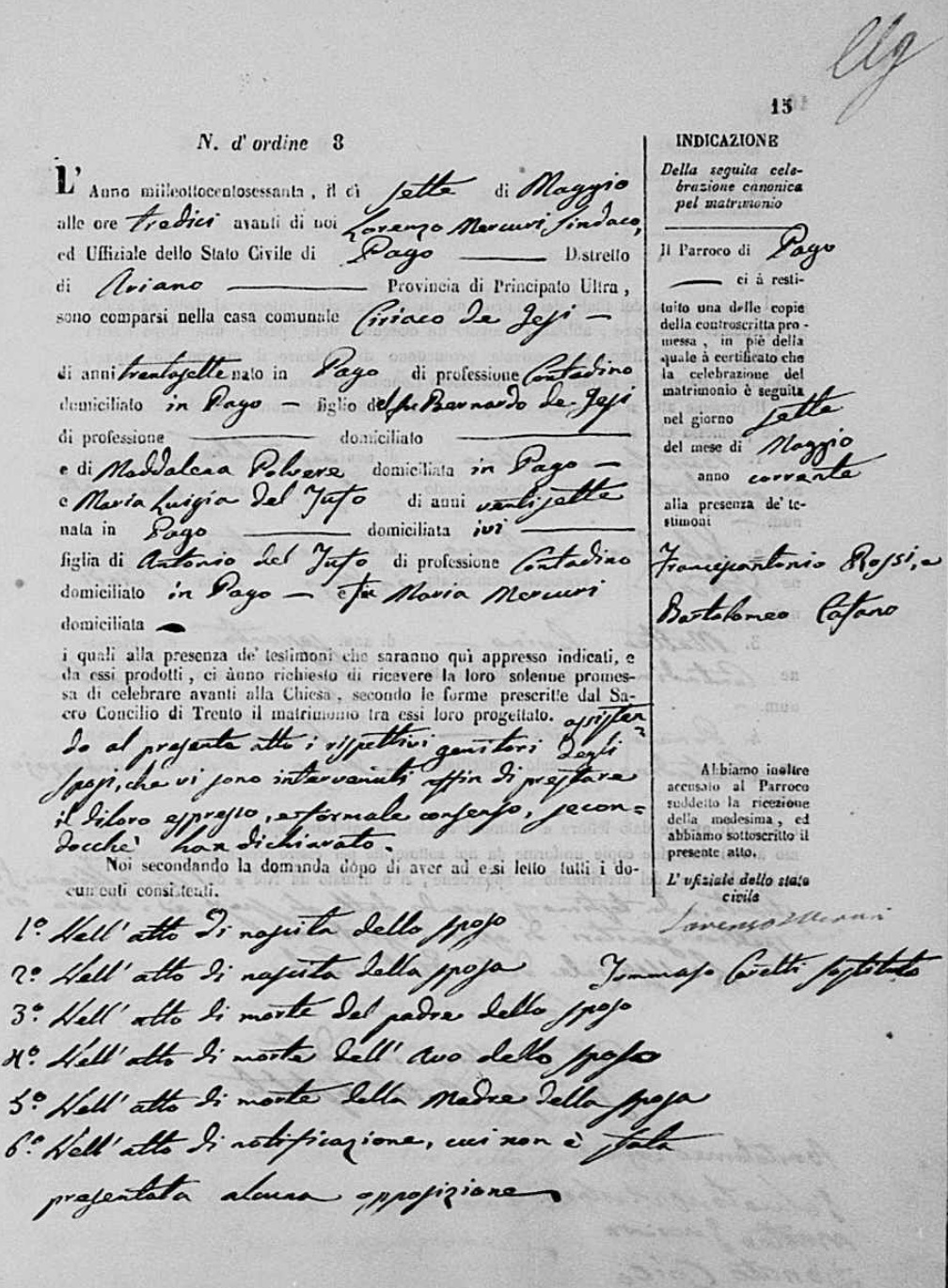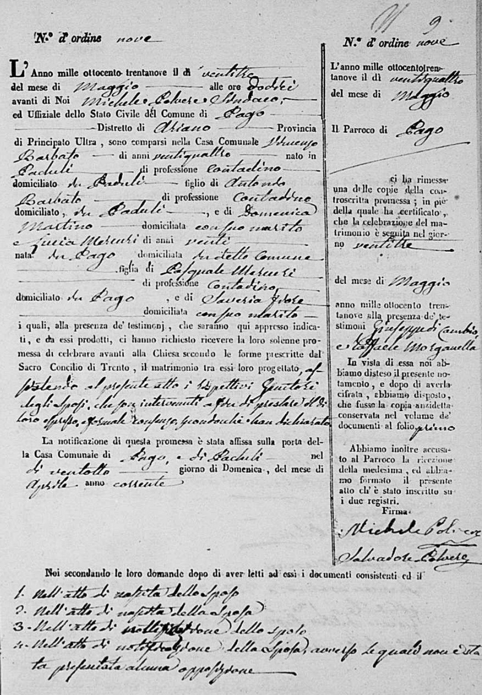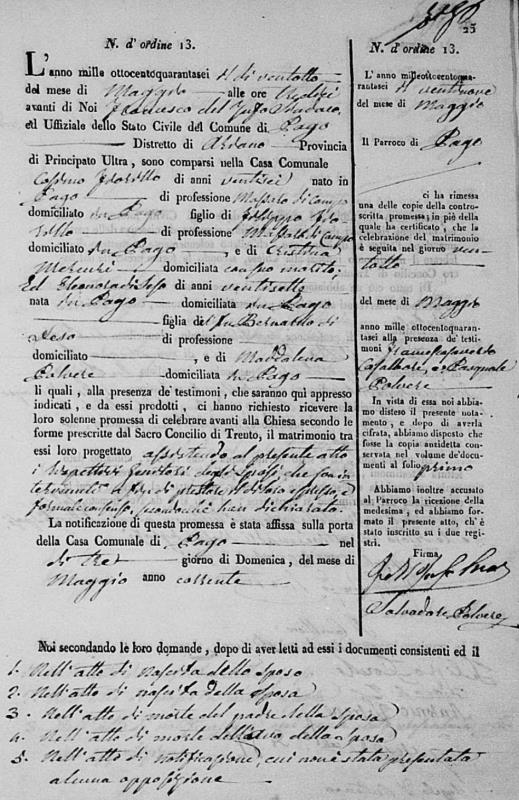 Donata Lagozino were married on July 19, 1840 in Pago Veiano, Benevento, Campania, Italy. He and