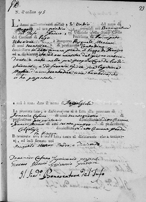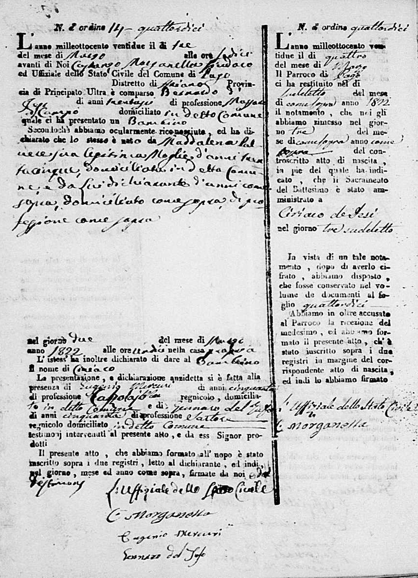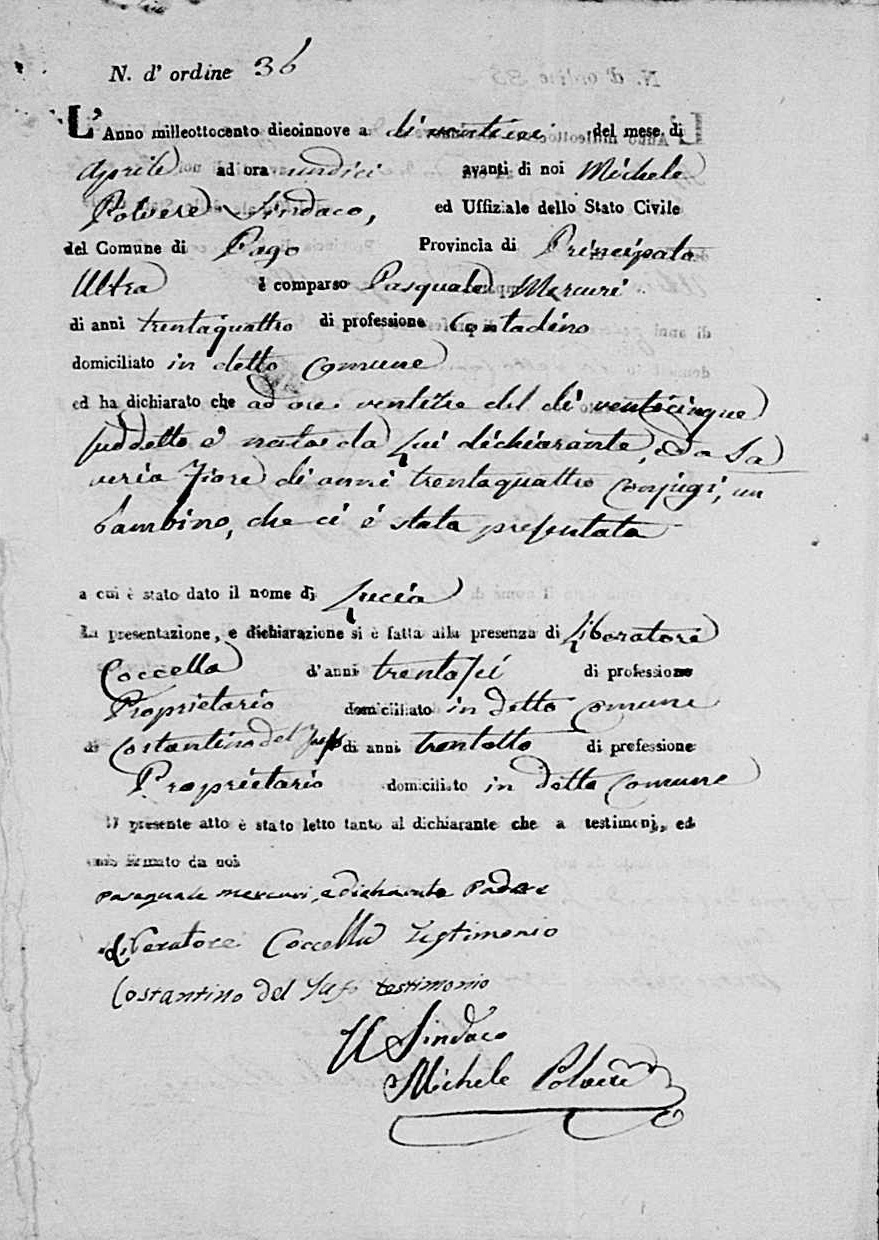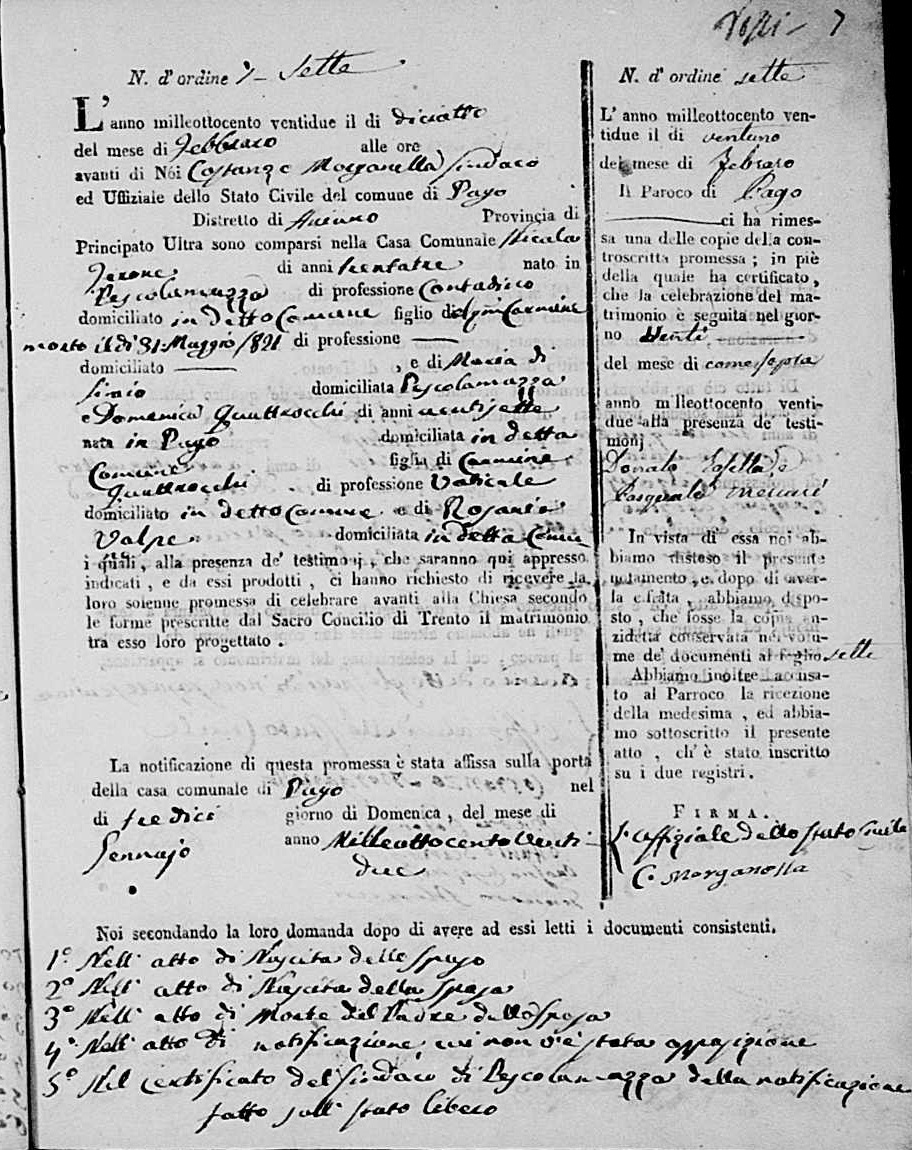 Donata Lagozino were married on July 19, 1840 in Pago Veiano, Benevento, Campania, Italy. He and