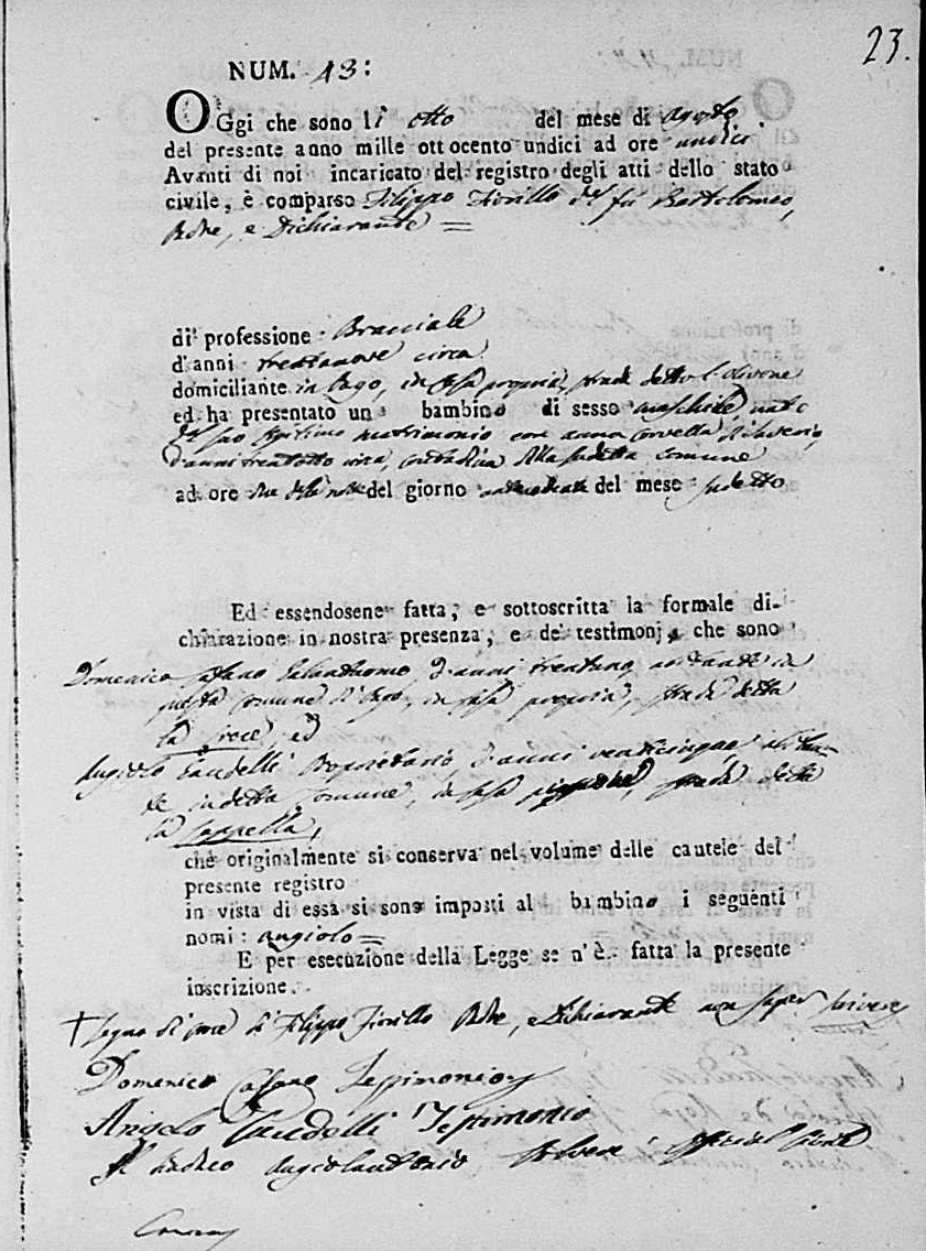 Angiolo Fiorillo was born on August 8, 1811 in Pago Veiano, Benevento, Campania, Italy. He died on August 9, 1811, at age 0, in Pago Veiano, Benevento, Campania, Italy.