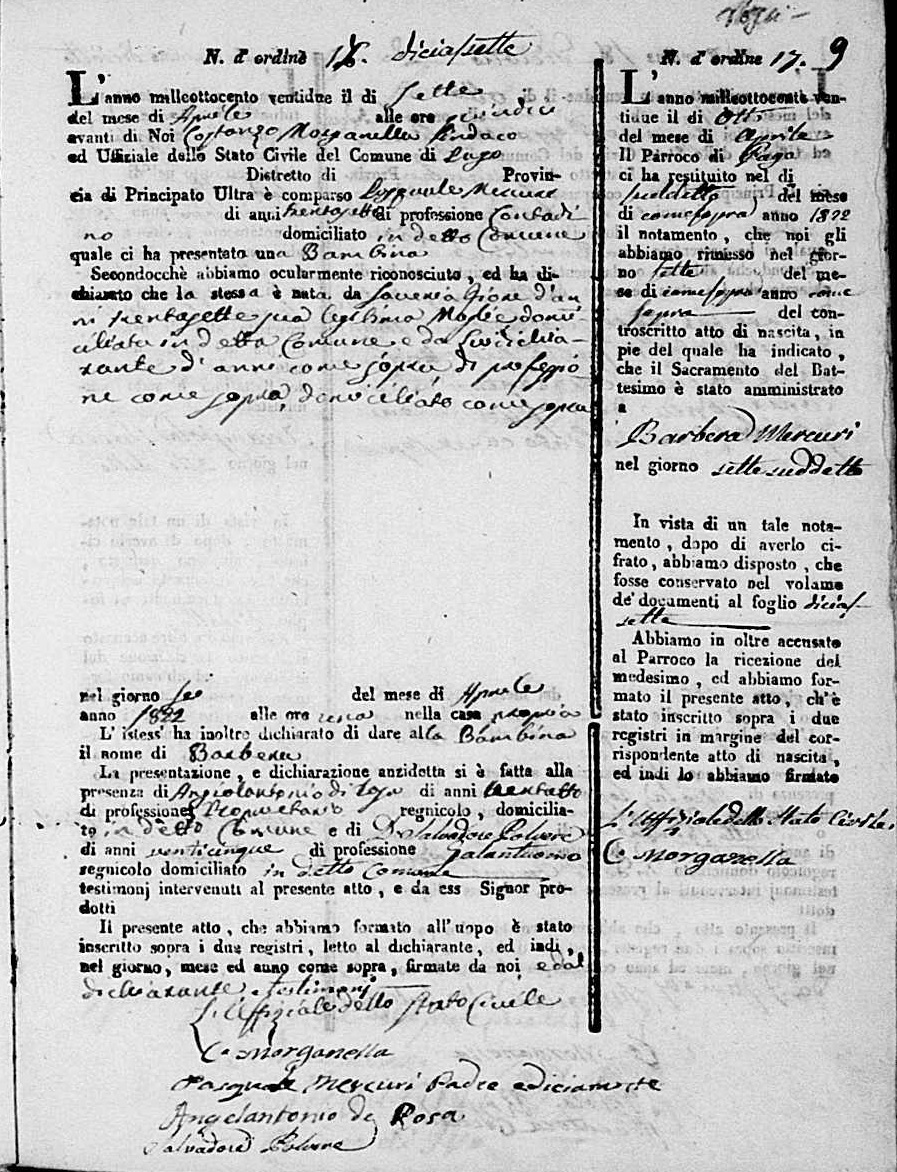 Barbera Mercuri was born on April 6, 1822 in Pago Veiano, Benevento, Campania, Italy. She and