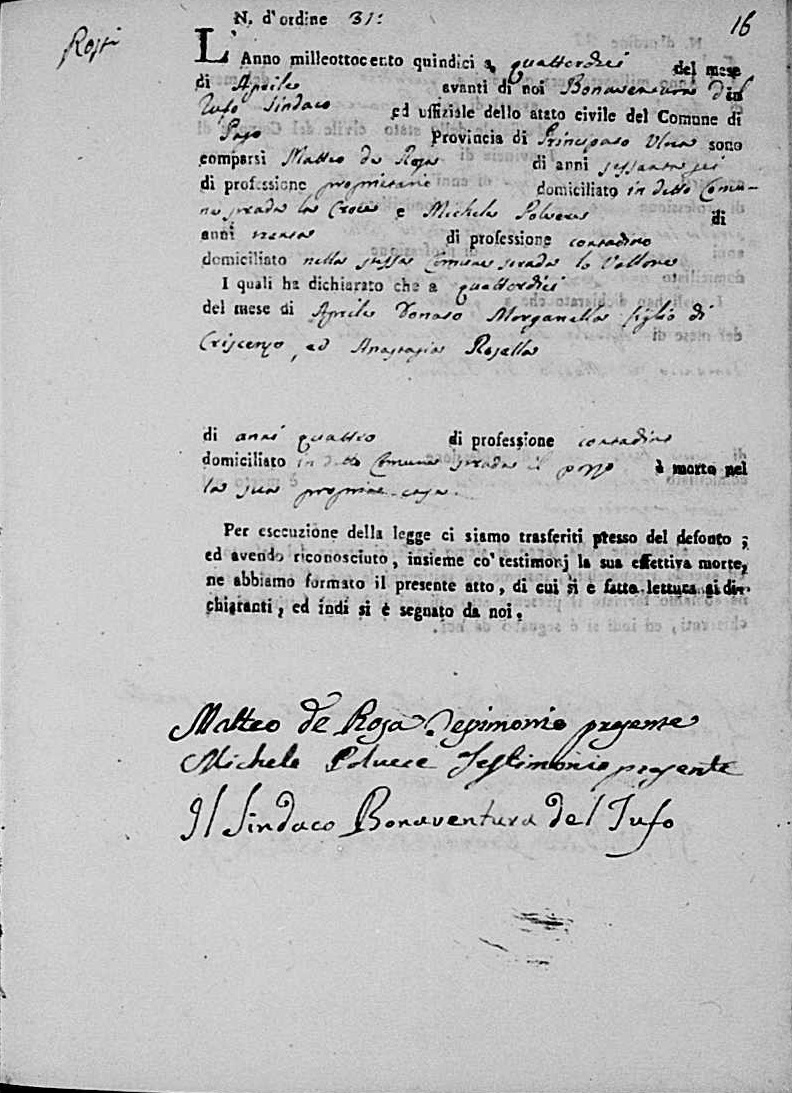Donato Morganella was born in 1811 in Pago Veiano, Benevento, Campania, Italy. He died on April 14, 1815, at age ~4, in Pago Veiano, Benevento, Campania, Italy.