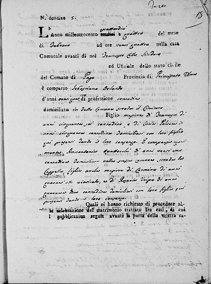 Sebariano Orlando were married on February 4, 1814 in Pago Veiano, Benevento, Campania, Italy. She died.